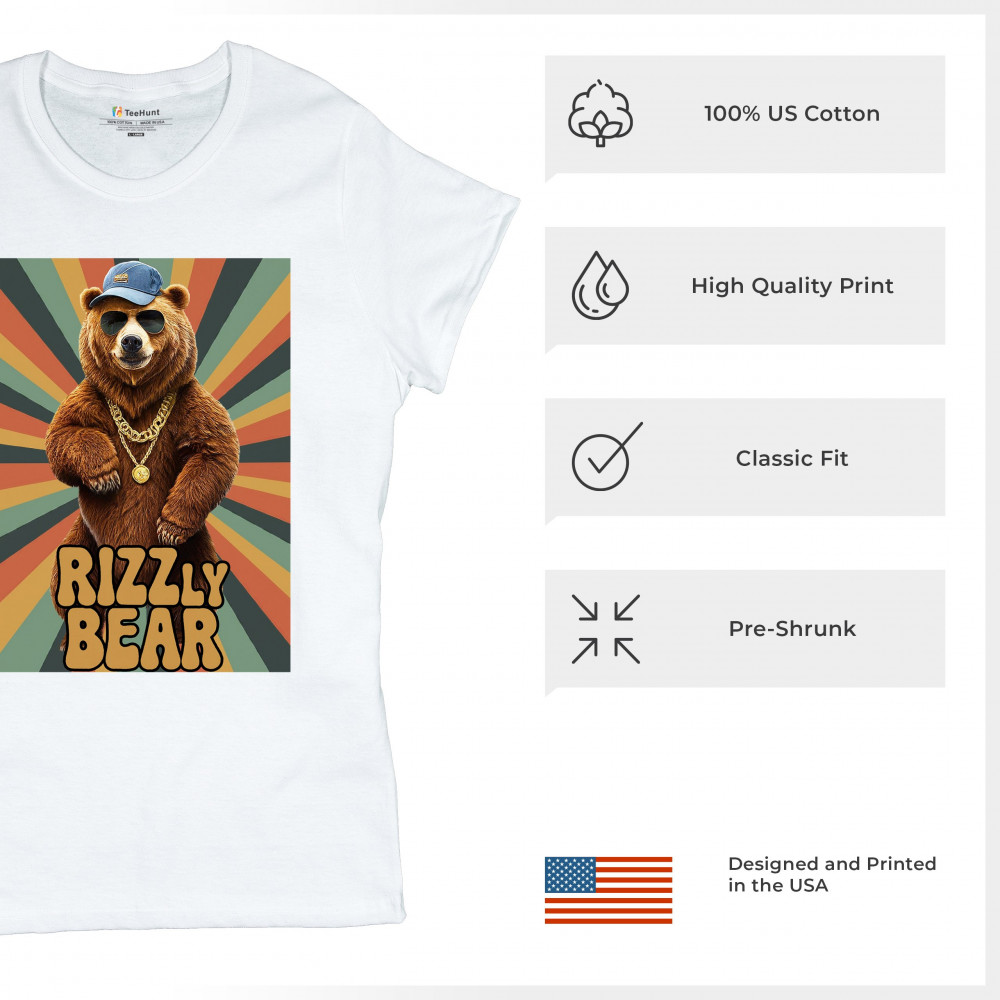 Here's to the bear that got the 'rizz.' With shades on and bling out, this bear is not just part of the scene; it is the scene. This design says 'I'm here to party', and the party doesn't start till the Rizzly Bear walks in.