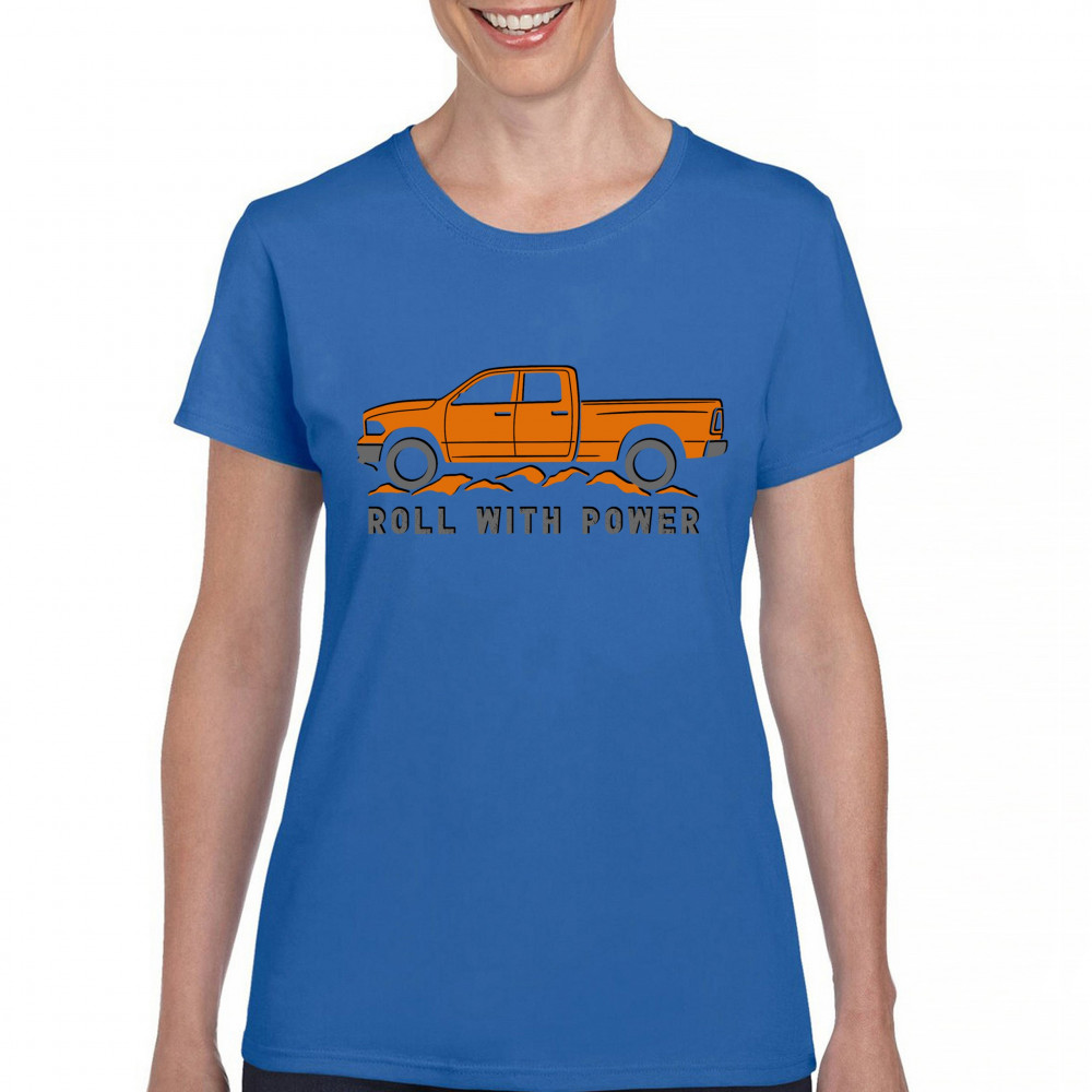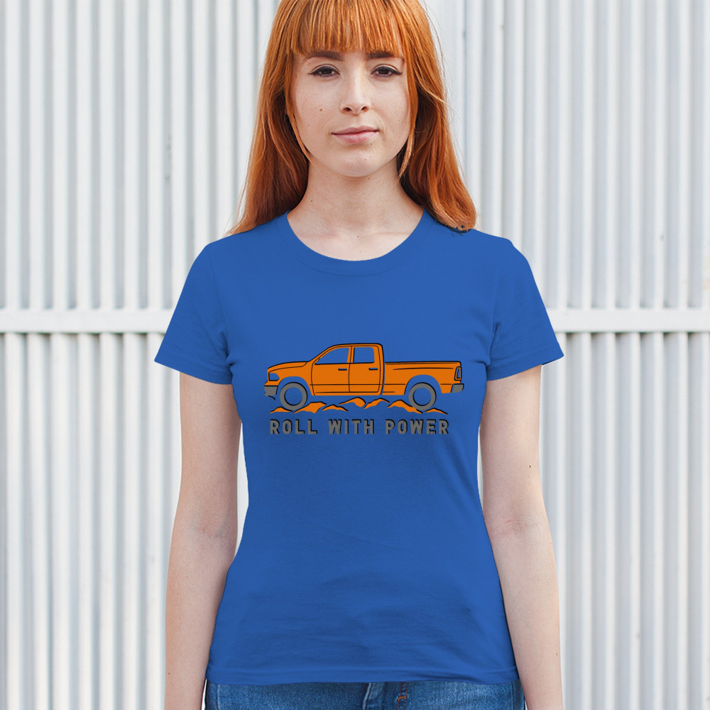 Pickup truck design for off-road fans and truck lovers. Show your road power and style with this bold “Roll With Power†truck graphic.