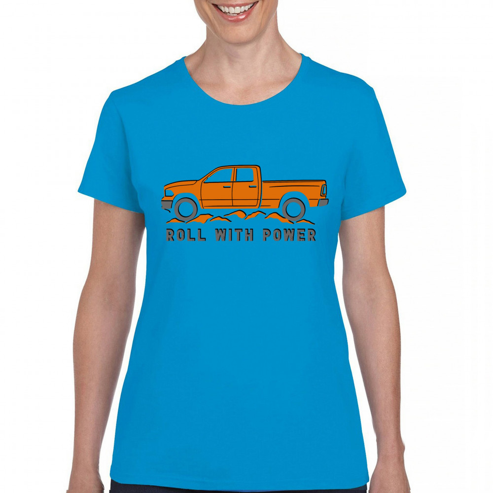 Pickup truck design for off-road fans and truck lovers. Show your road power and style with this bold “Roll With Power†truck graphic.