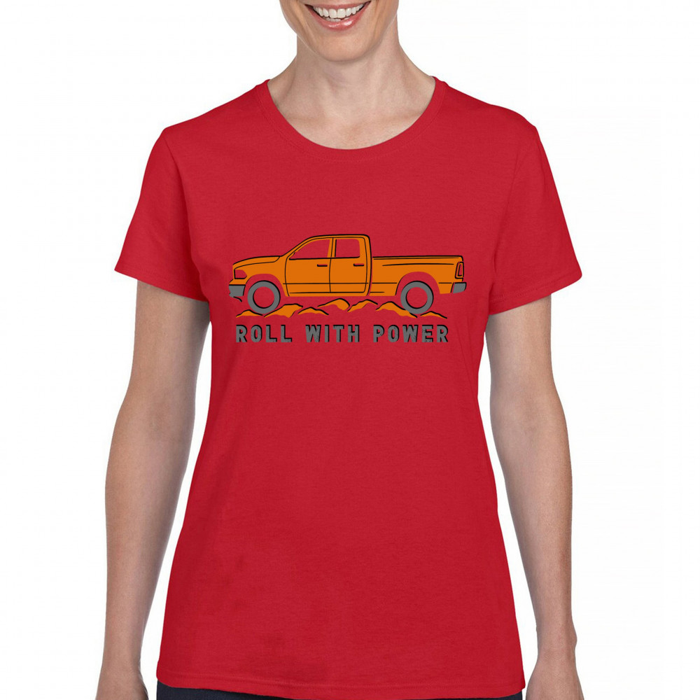Pickup truck design for off-road fans and truck lovers. Show your road power and style with this bold “Roll With Power†truck graphic.