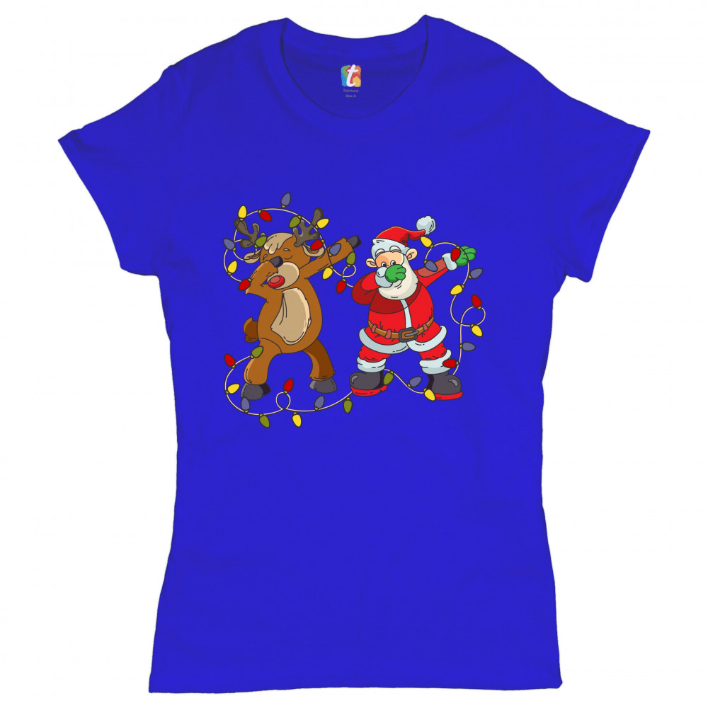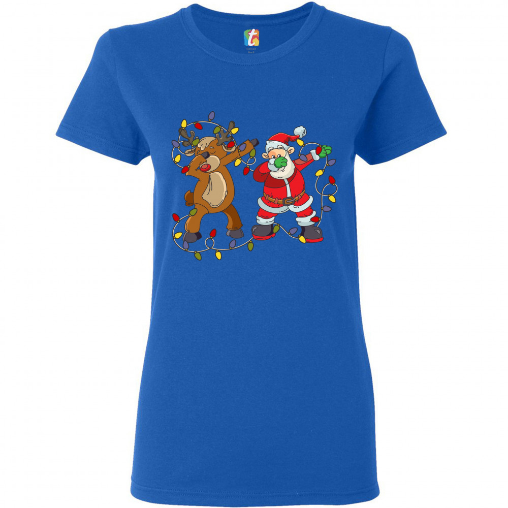 SANTA CLAUS AND RUDOLPH DAB DANCE t-shirt merry christmas xmas women's tee royal blue
