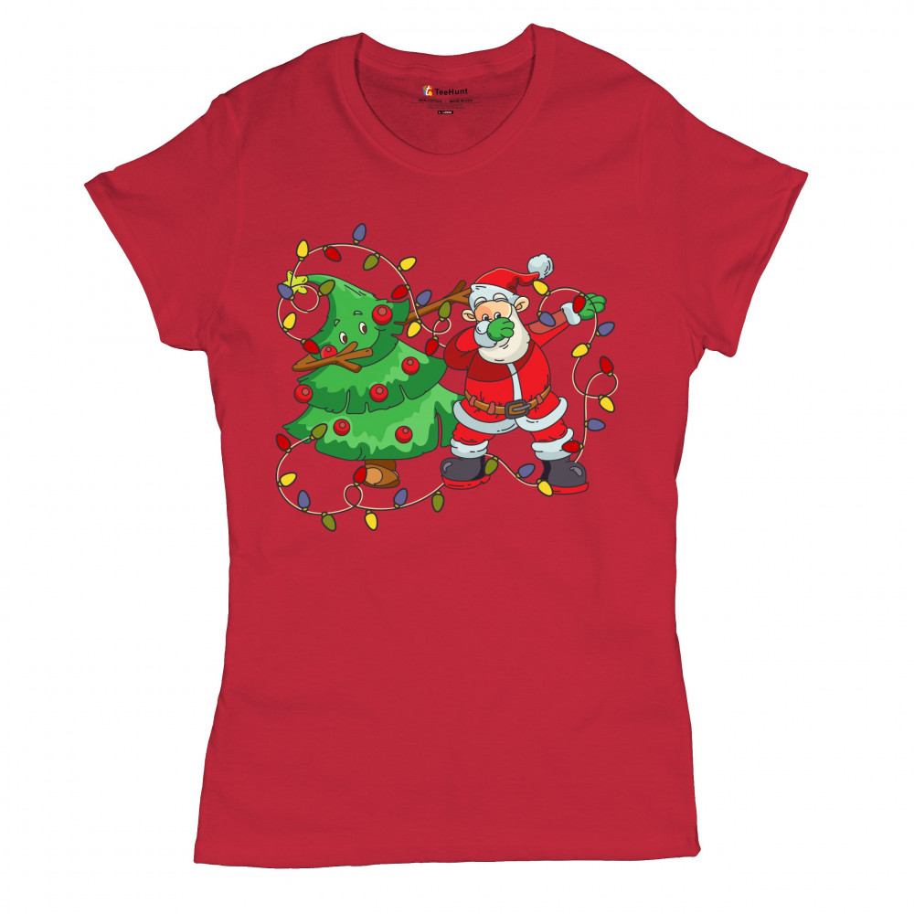 SANTA CLAUS DABBING WITH CHRISTMAS TREE t-shirt merry and bright women's tee red