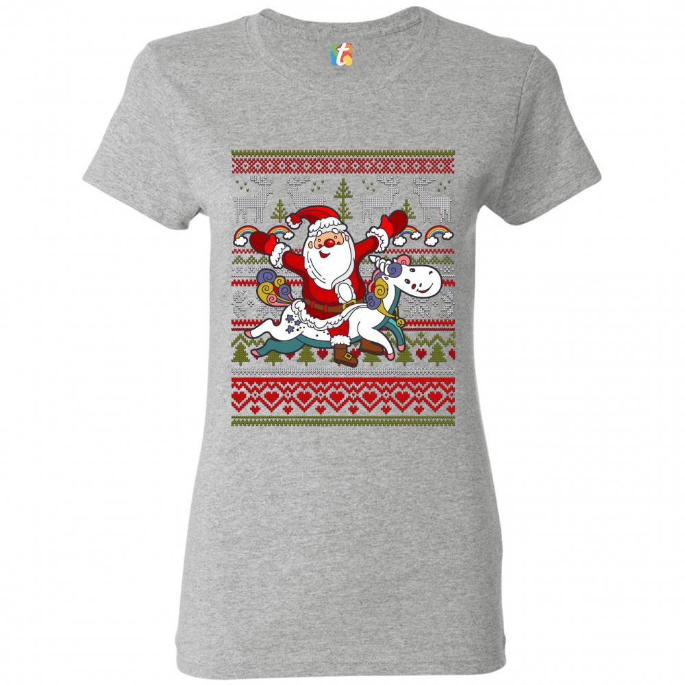 SANTA CLAUS RIDING A UNICORN t-shirt merry christmas ugly sweater women's tee gray