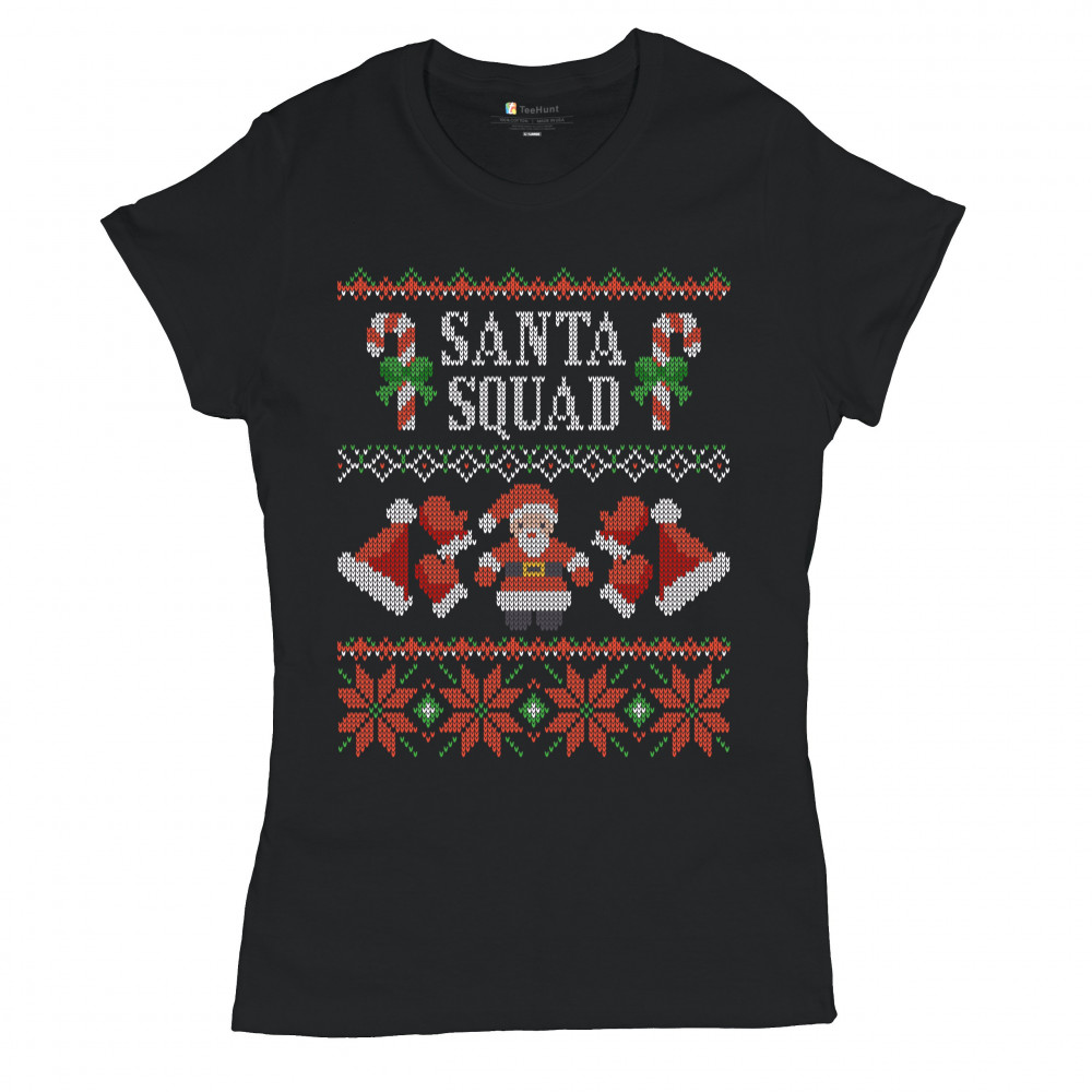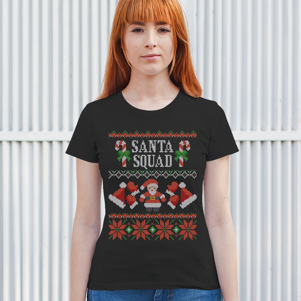 SANTA SQUAD t-shirt cute ugly sweater merry and bright christmas women's tee black