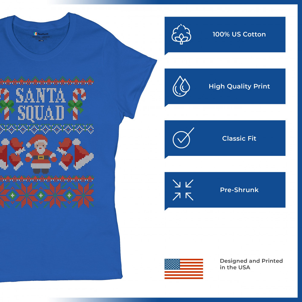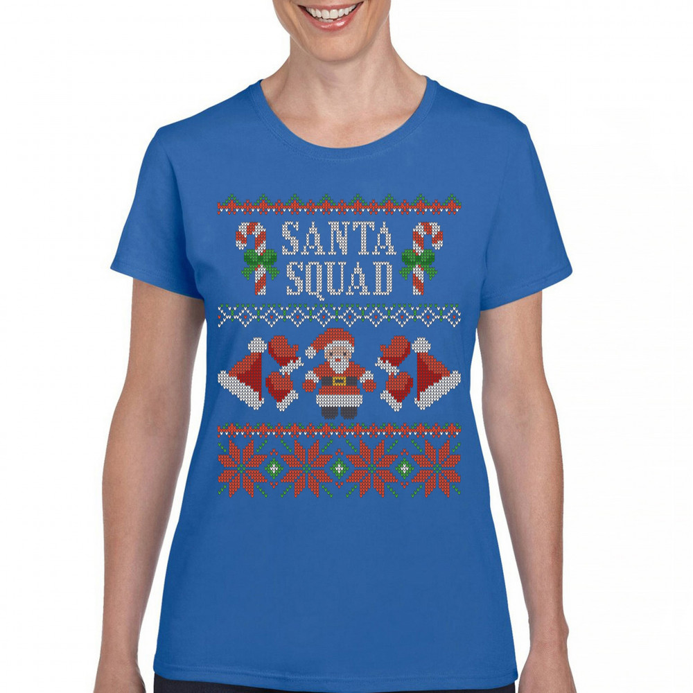SANTA SQUAD t-shirt cute ugly sweater merry and bright christmas women's tee royal blue