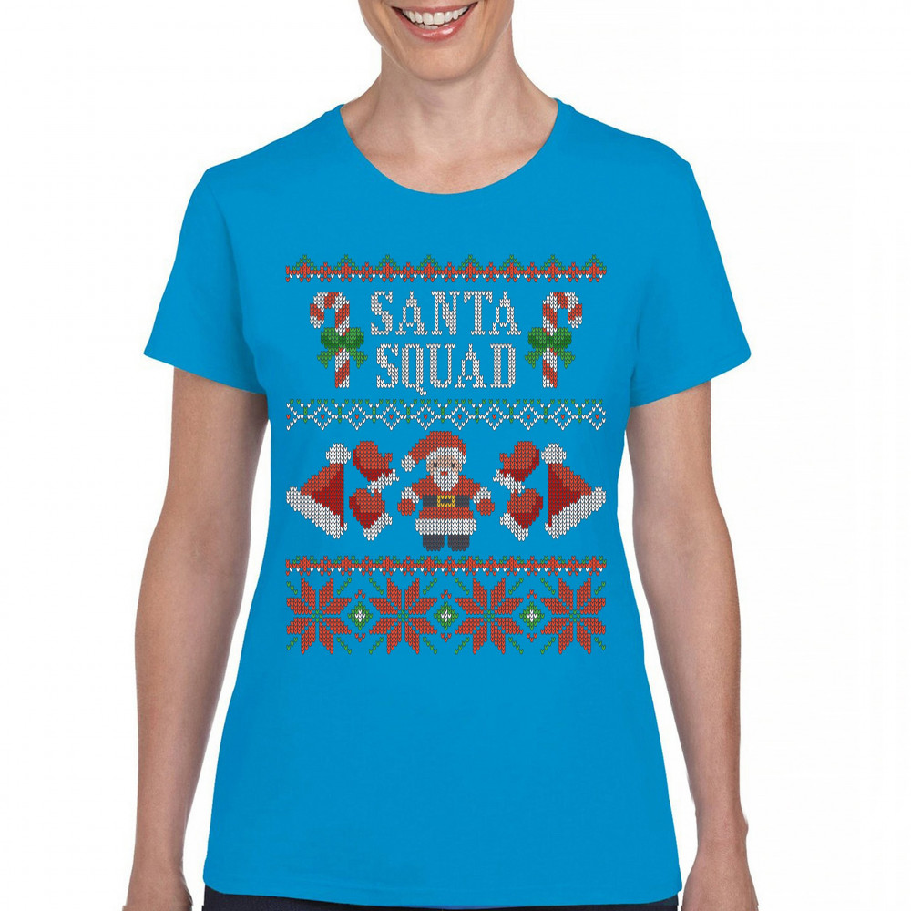 SANTA SQUAD t-shirt cute ugly sweater merry and bright christmas women's tee light blue