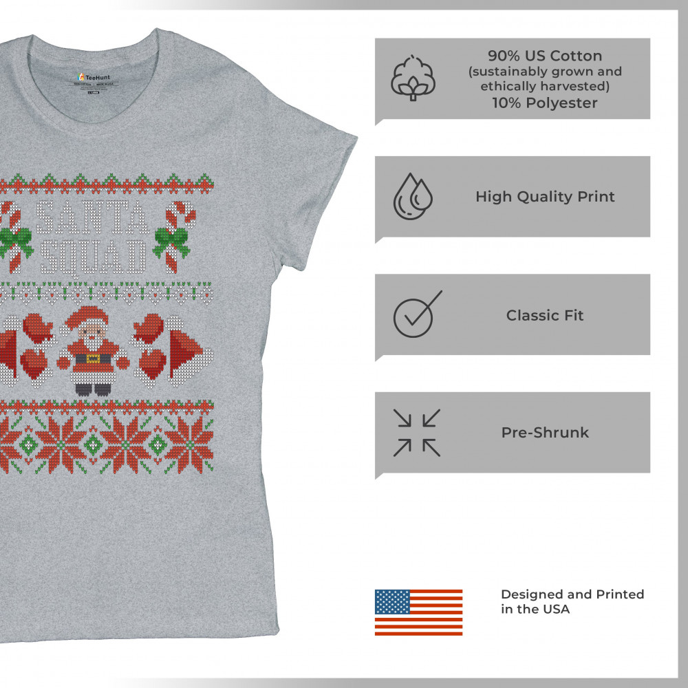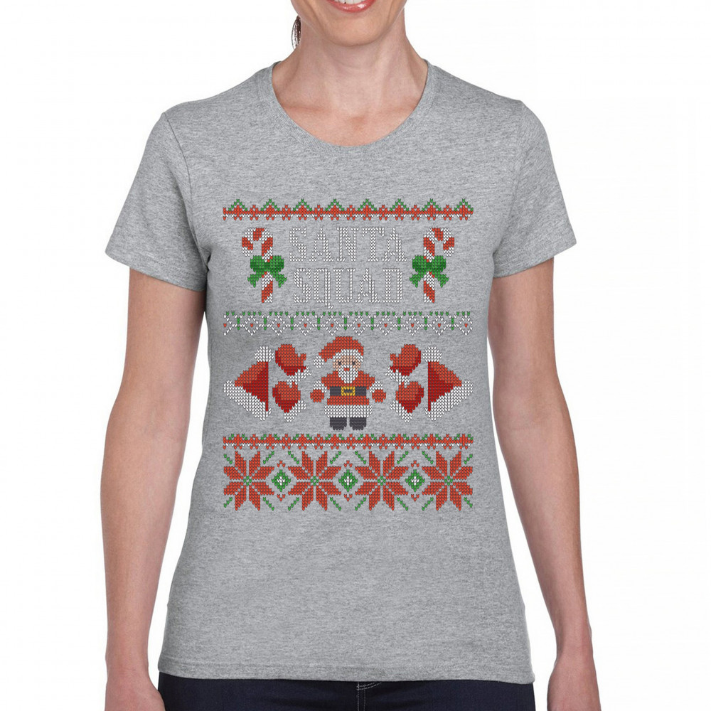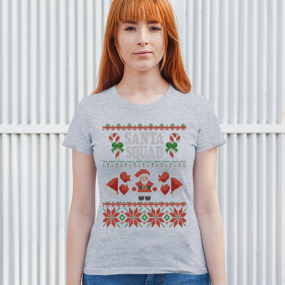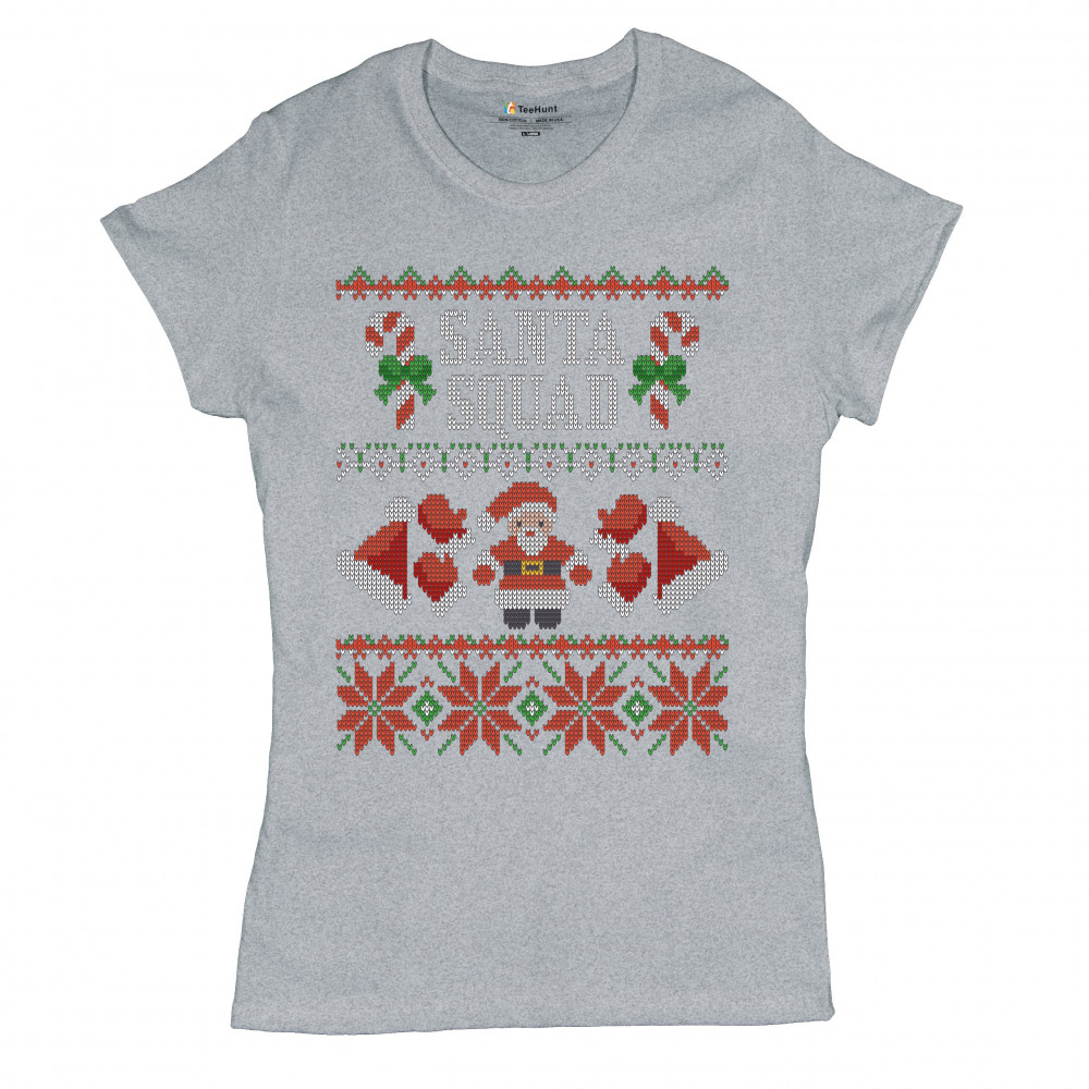 SANTA SQUAD t-shirt cute ugly sweater merry and bright christmas women's tee gray