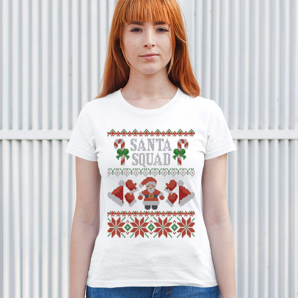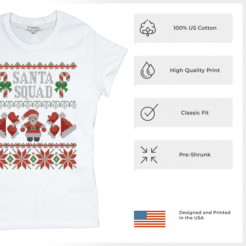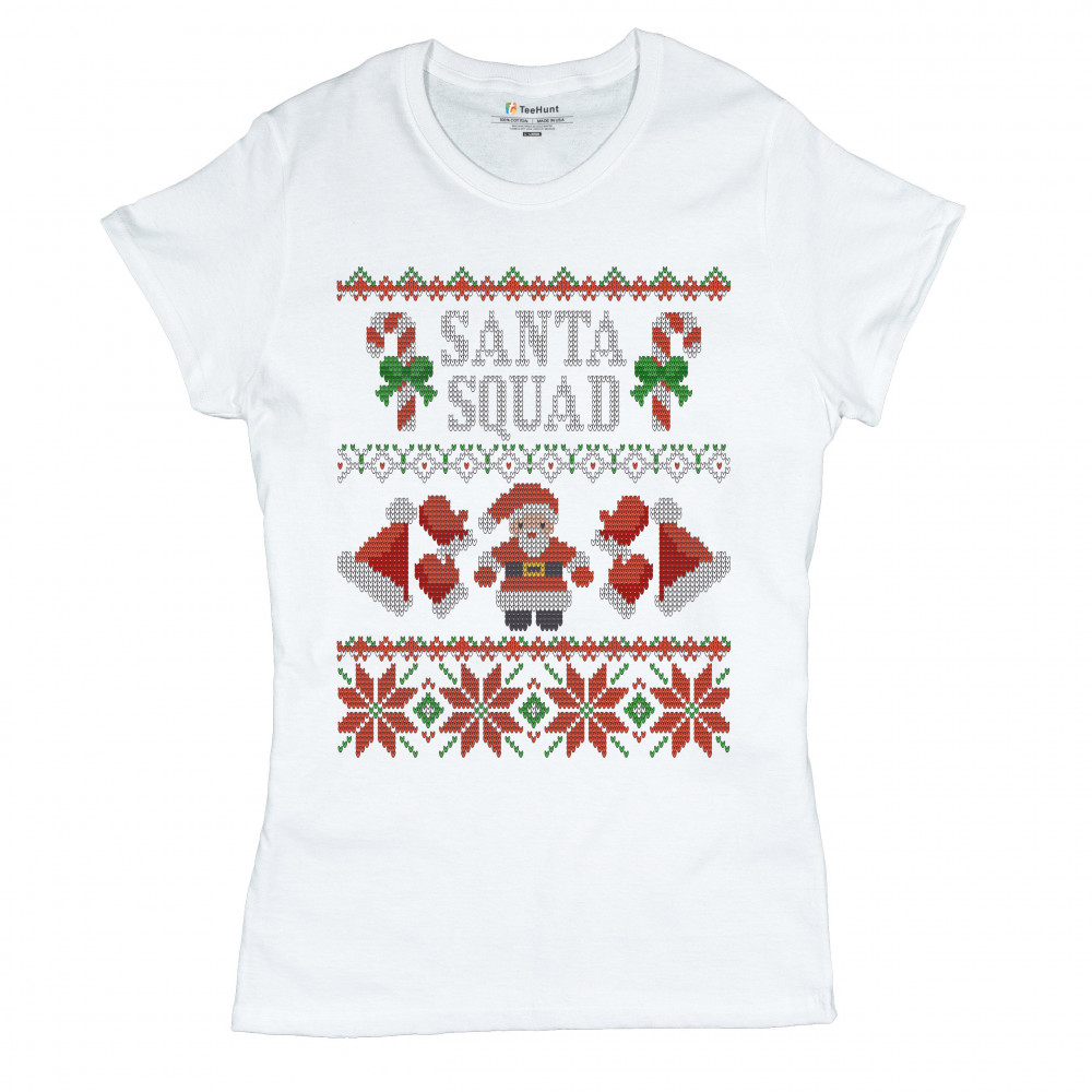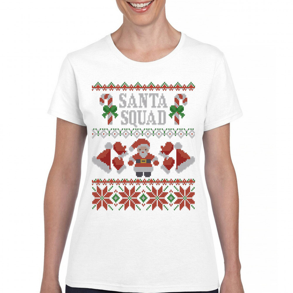 SANTA SQUAD t-shirt cute ugly sweater merry and bright christmas women's tee white
