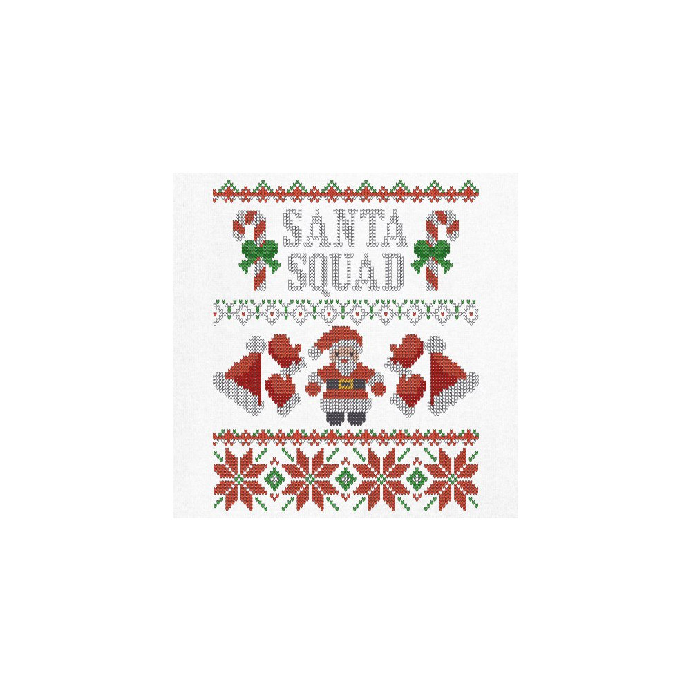 A cute print saying: "Santa Squad" and featuring 2 candy canes, 2 Christmas hats and 4 gloves. The print is decorated as an ugly sweater. Amazing choice to make people smile and spread positive vibes on Christmas Eve.