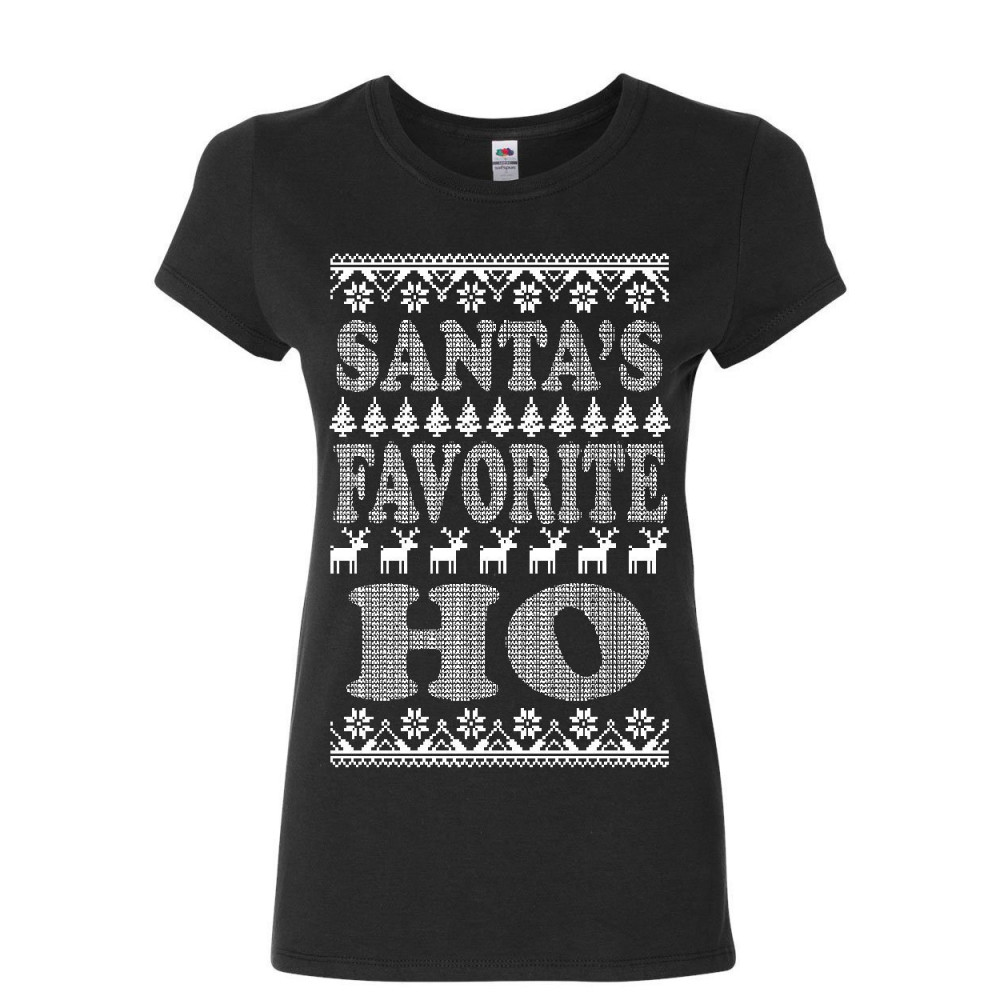 SANTA'S FAVORITE HO women's t-shirt ugly sweatshirt xmas ho ho ho cotton tee black