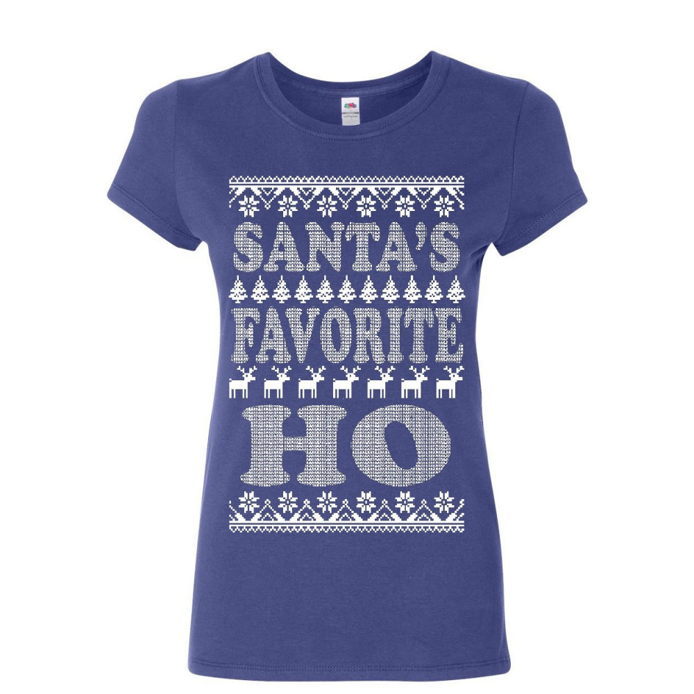 SANTA'S FAVORITE HO women's t-shirt ugly sweatshirt xmas ho ho ho cotton tee blue