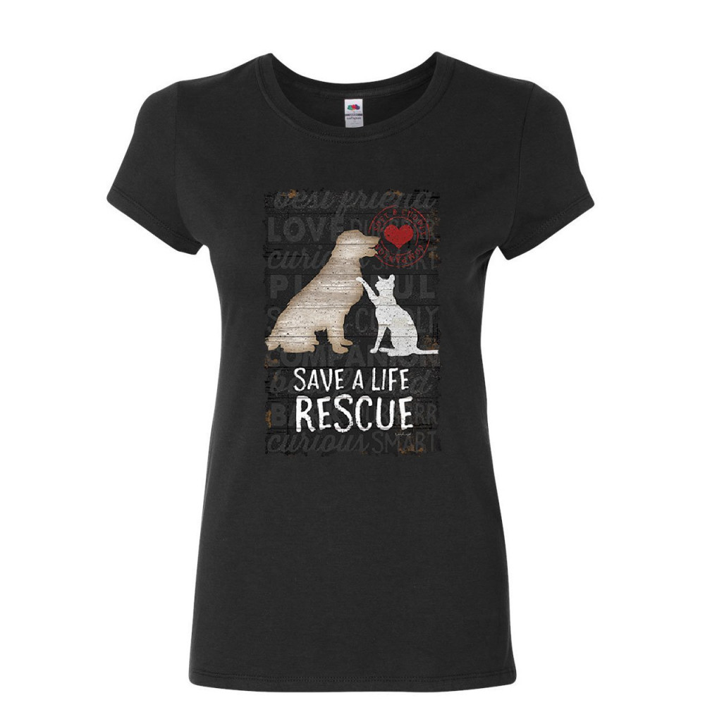 SAVE A LIFE rescue a pet women's t-shirt dog cat kitty puppy shelter paw shirt black