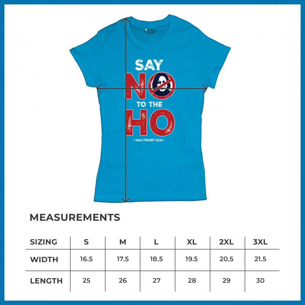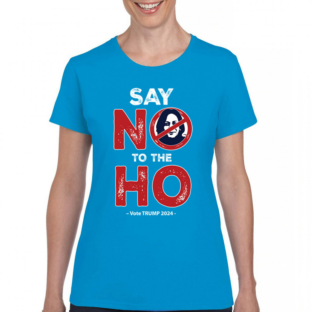 Show your conservative spirit with the "Say No to the Ho" print, perfect for rallies or daily wear. Support Trump-Vance 2024 and Make America Great Again.