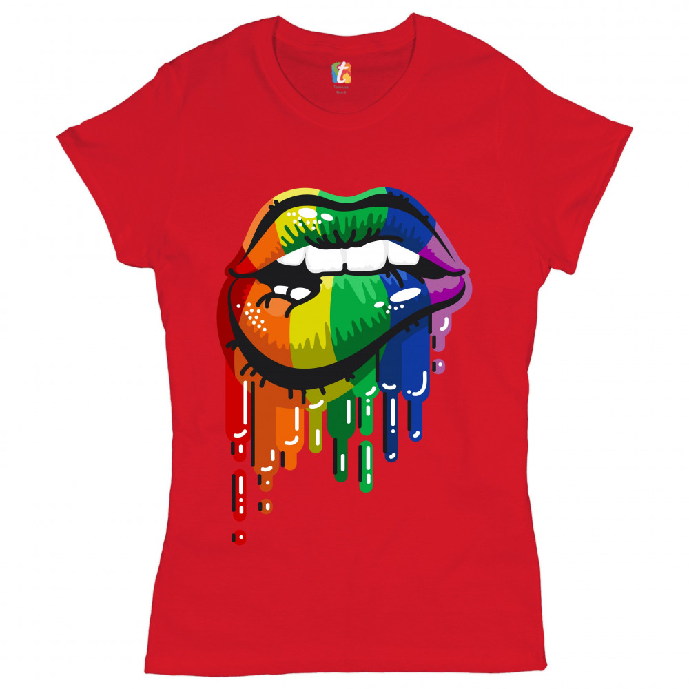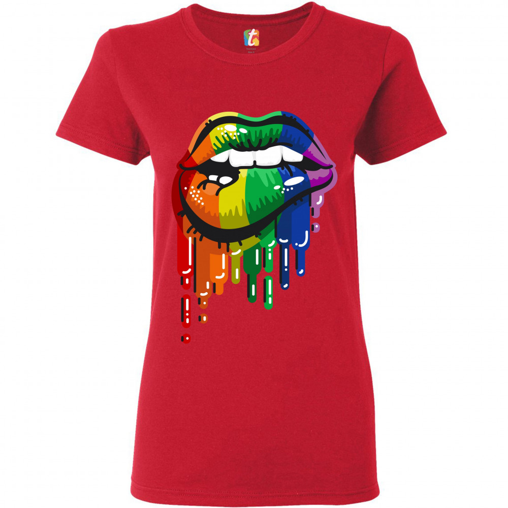 SEXY MELTING RAINBOW LIPS t-shirt lgbt queer gay pride love wins women's tee red