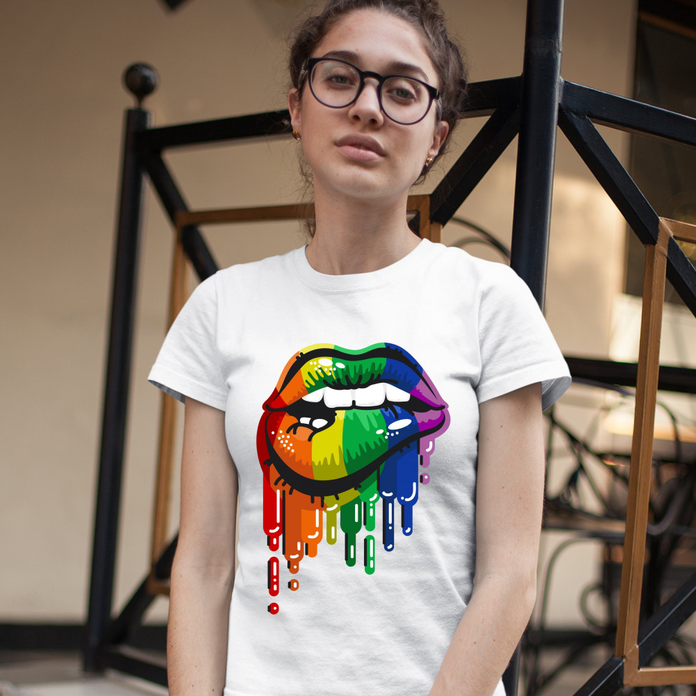 SEXY MELTING RAINBOW LIPS t-shirt lgbt queer gay pride love wins women's tee white