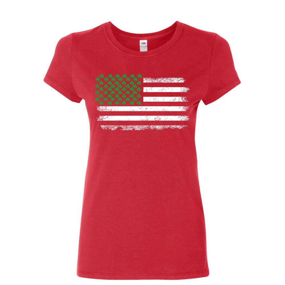 SHAMROCK AMERICAN FLAG women's t-shirt stars and stripes st. patrick's shirt red