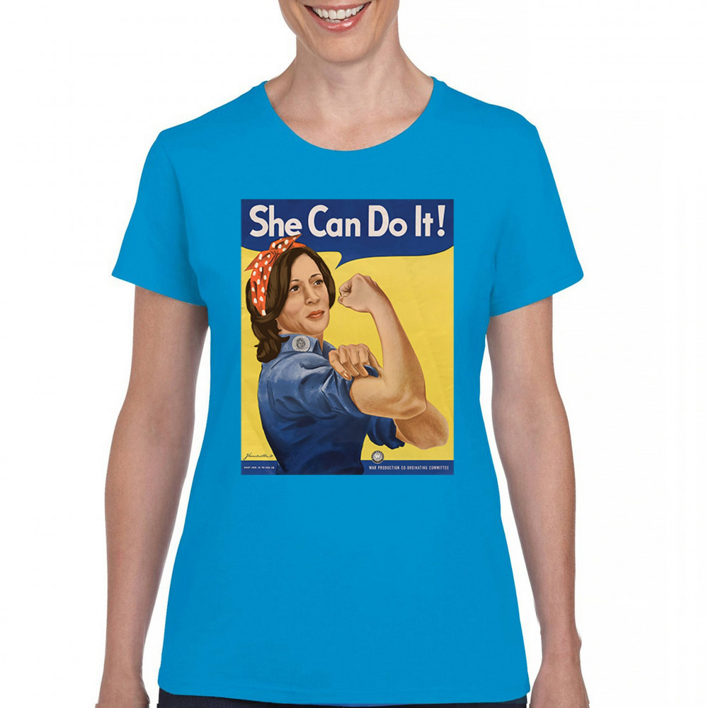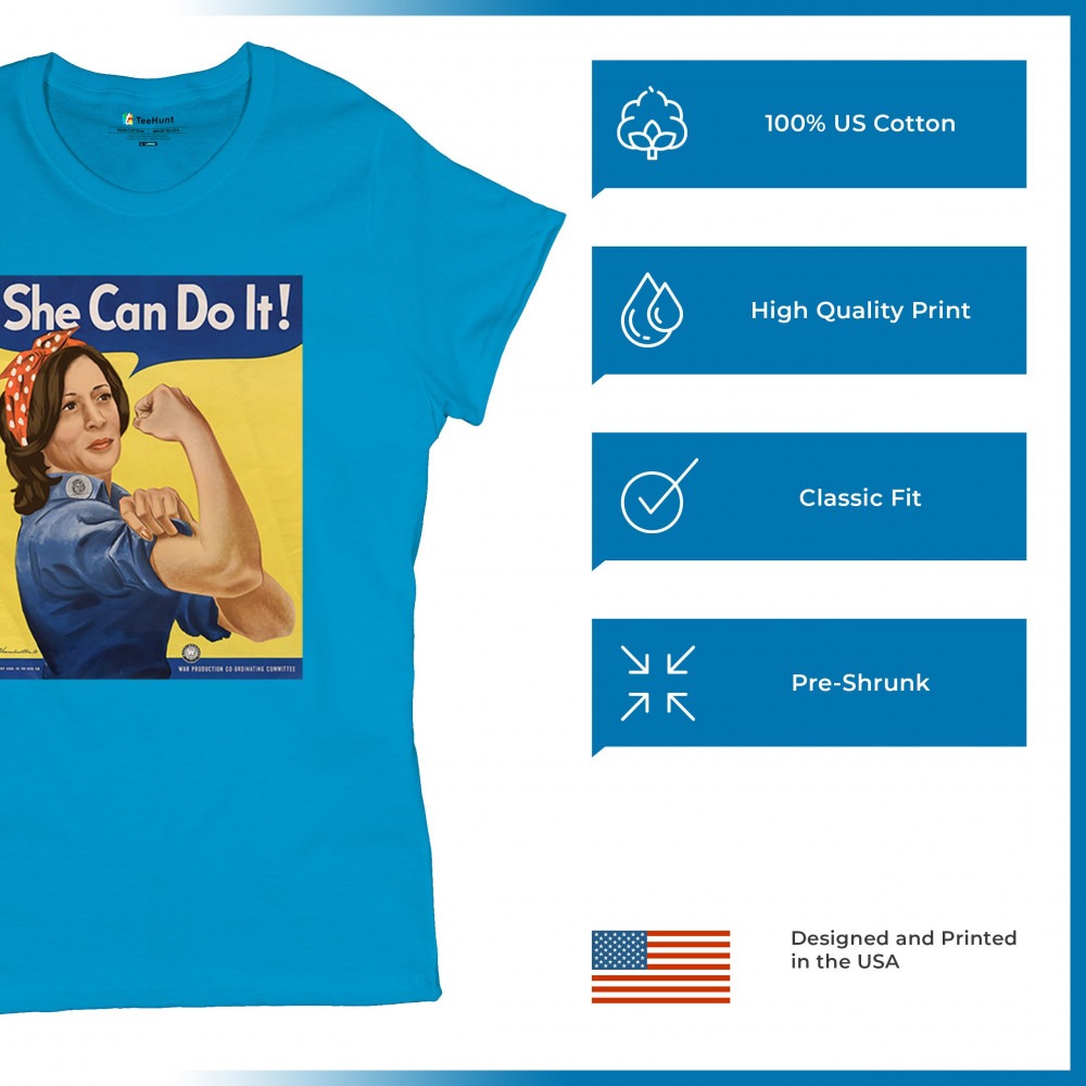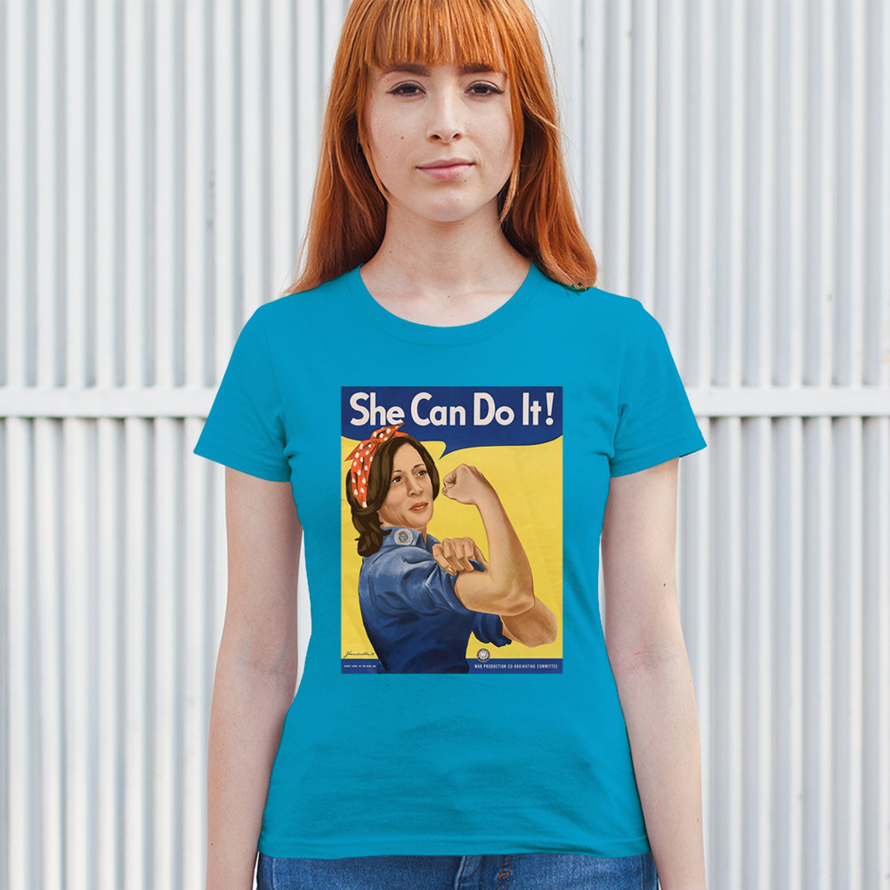 Show your support for Kamala Harris in 2024 with this empowering "She Can Do It!" design. Inspired by Rosie the Riveter, it symbolizes strength, equality, and progress.