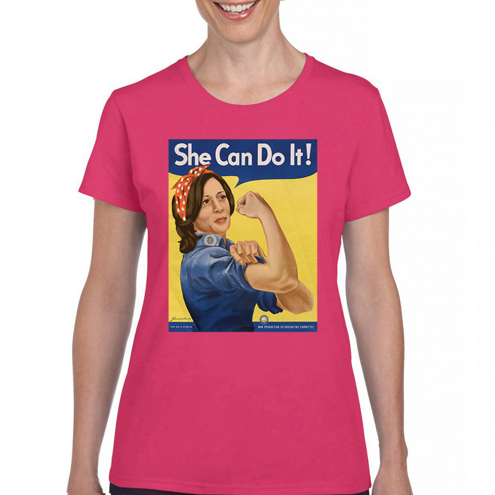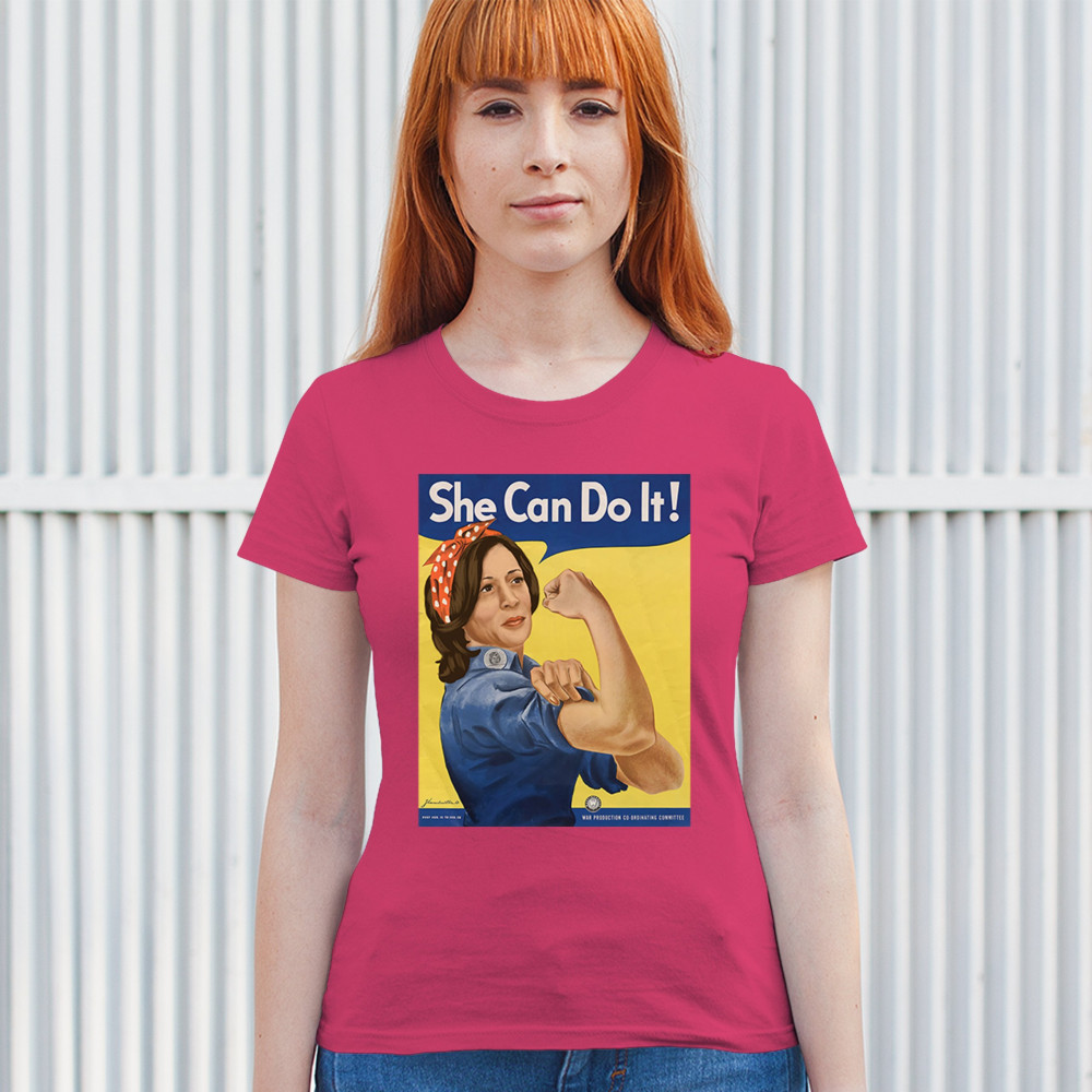 Show your support for Kamala Harris in 2024 with this empowering "She Can Do It!" design. Inspired by Rosie the Riveter, it symbolizes strength, equality, and progress.