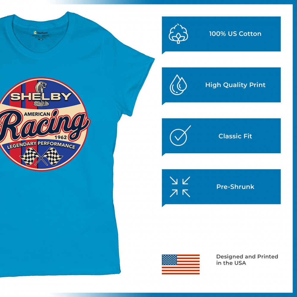 Rev up your wardrobe with our Shelby American Racing design, a tribute to 50 years of Ford Mustang glory and Carroll Shelby's racing legacy.