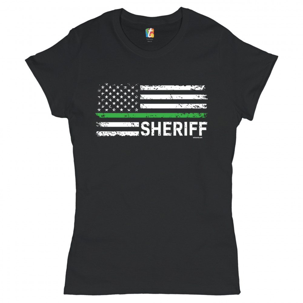 SHERIFF DISTRESSED AMERICAN FLAG t-shirt first responders patriotic women's tee black