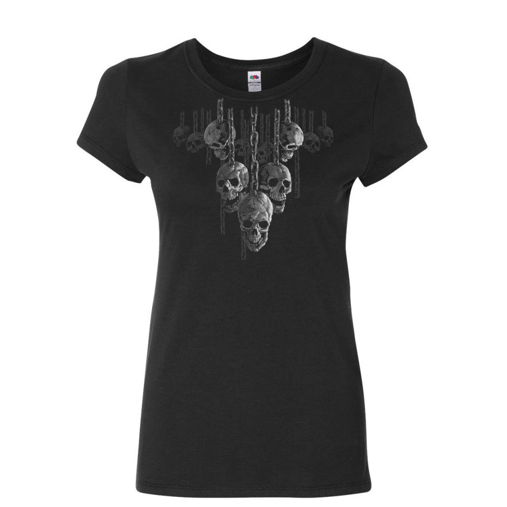 SKULLS HANGING ON CHAINS women's t-shirt death creepy scary hell devil shirt black