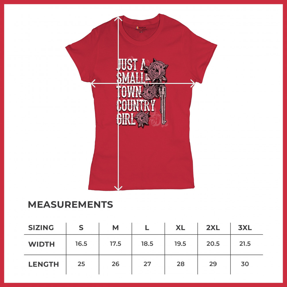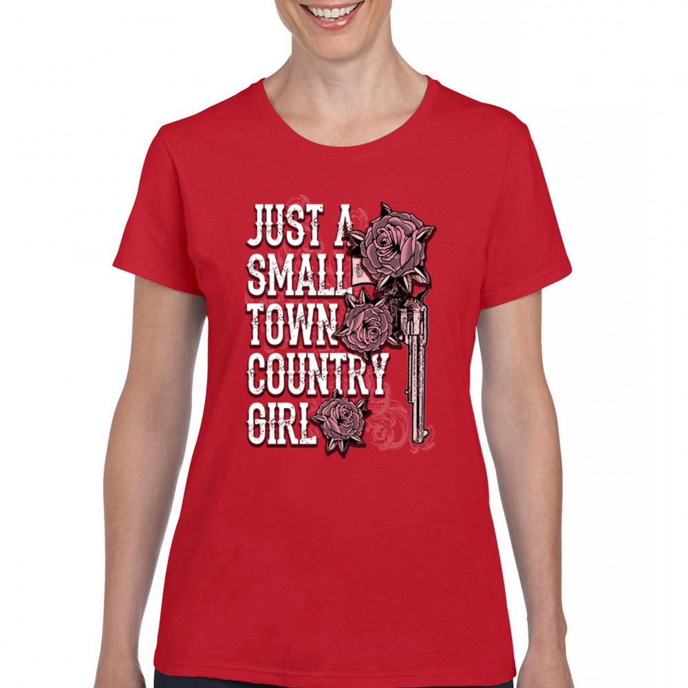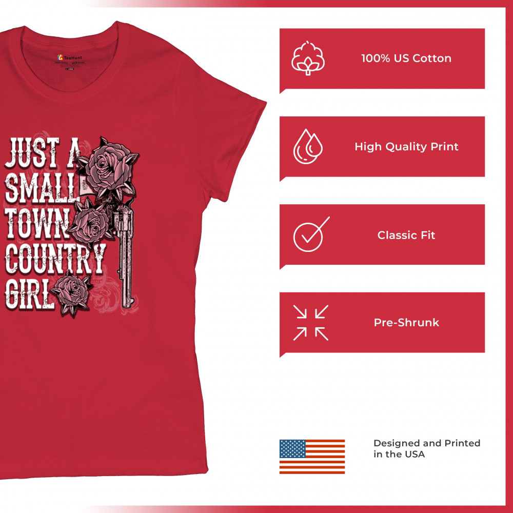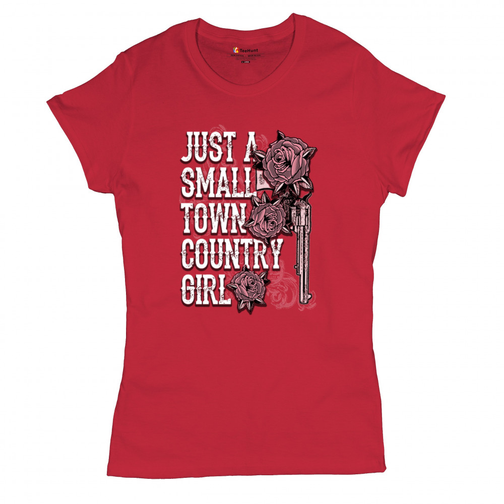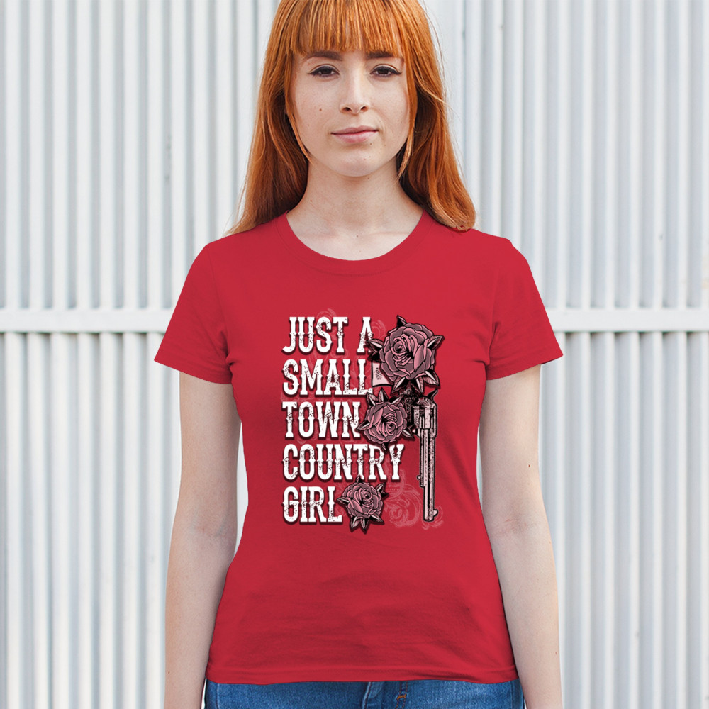 Rustic small town country girl design with rose and revolver art. Great for cowgirls, rodeos, fairs, and southern pride style.