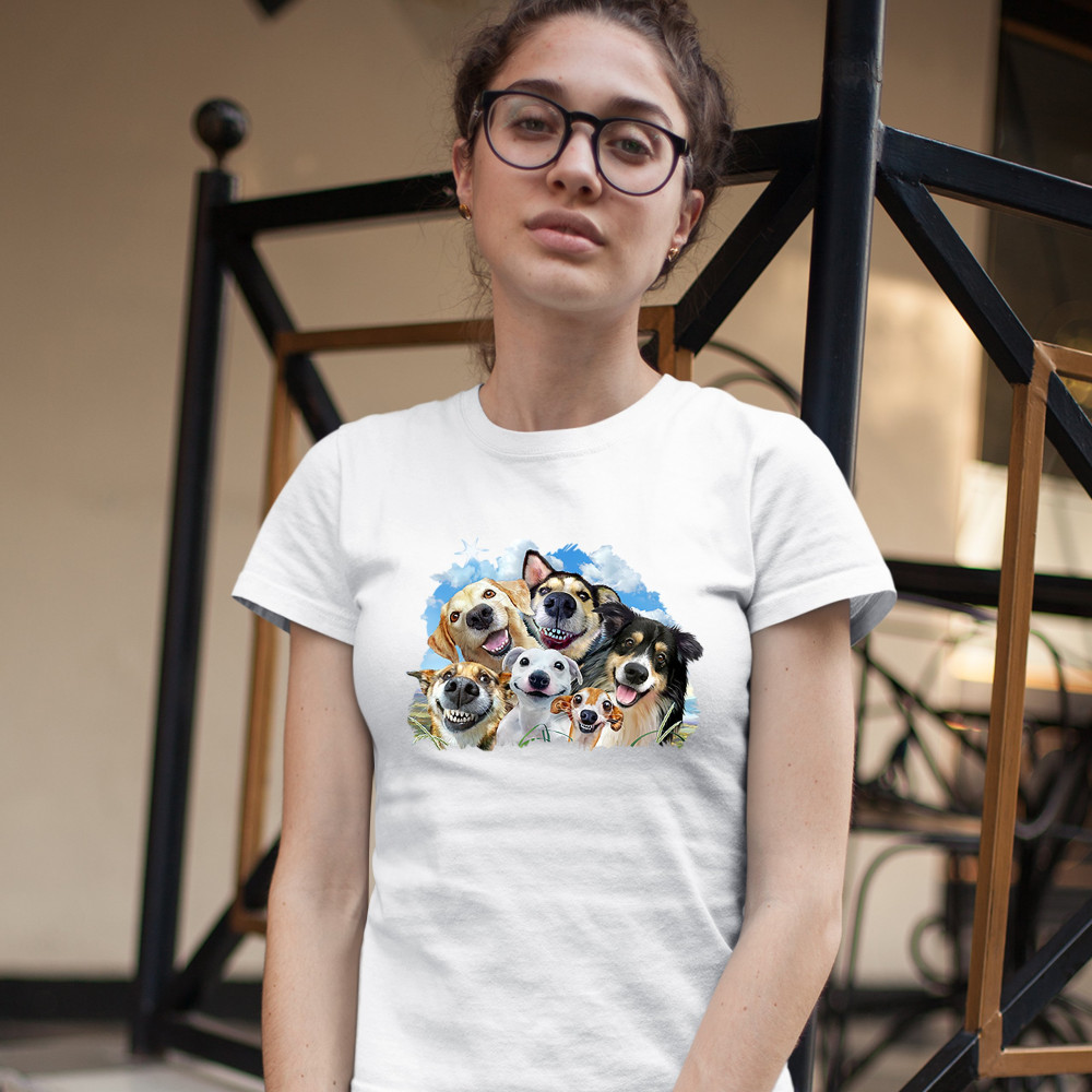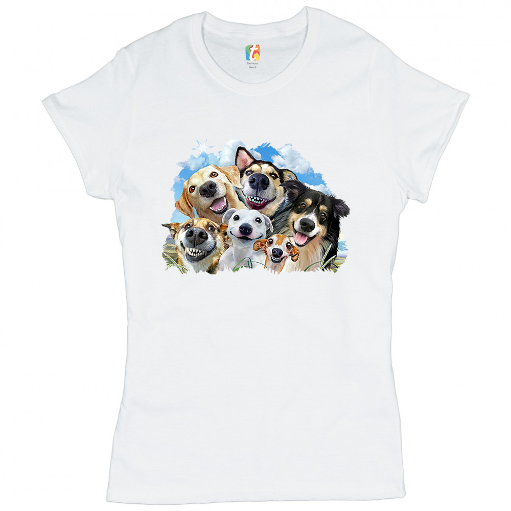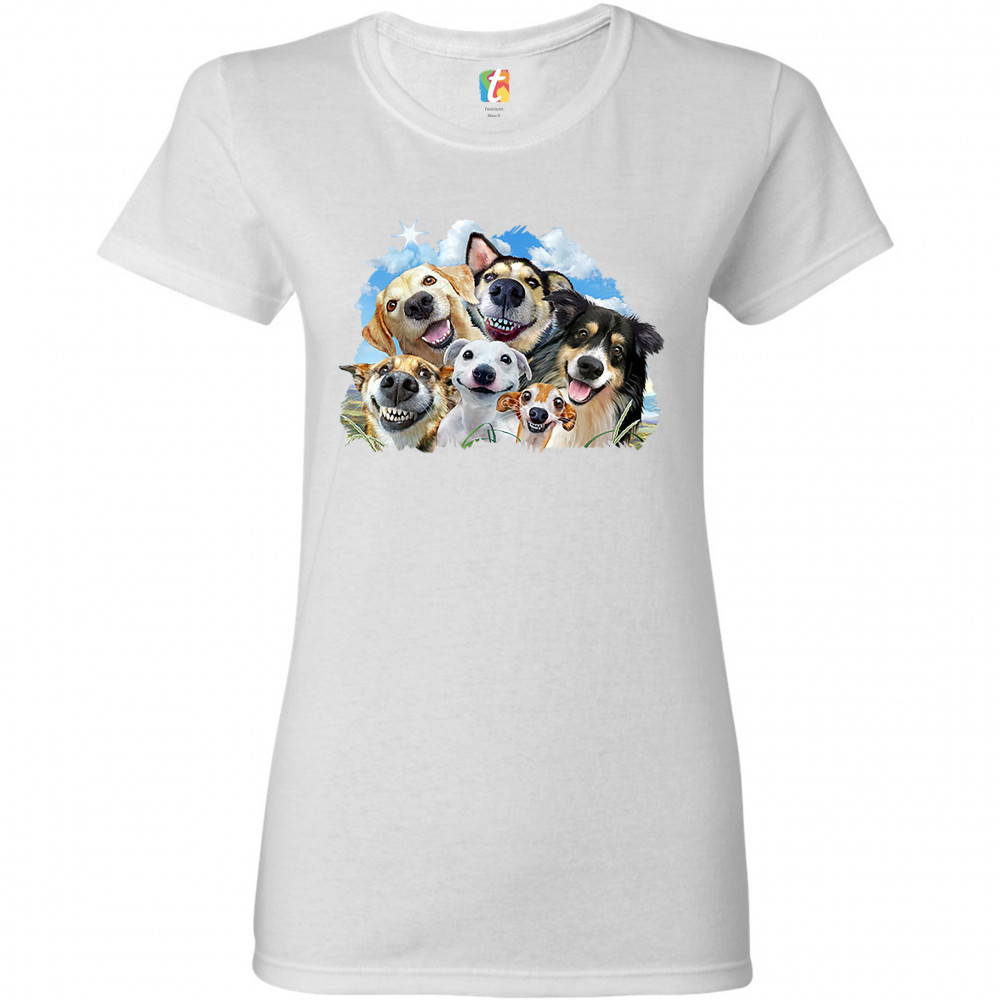 SMILING DOGS' SELFIE t-shirt funny animal dog lover cute puppies women's tee white