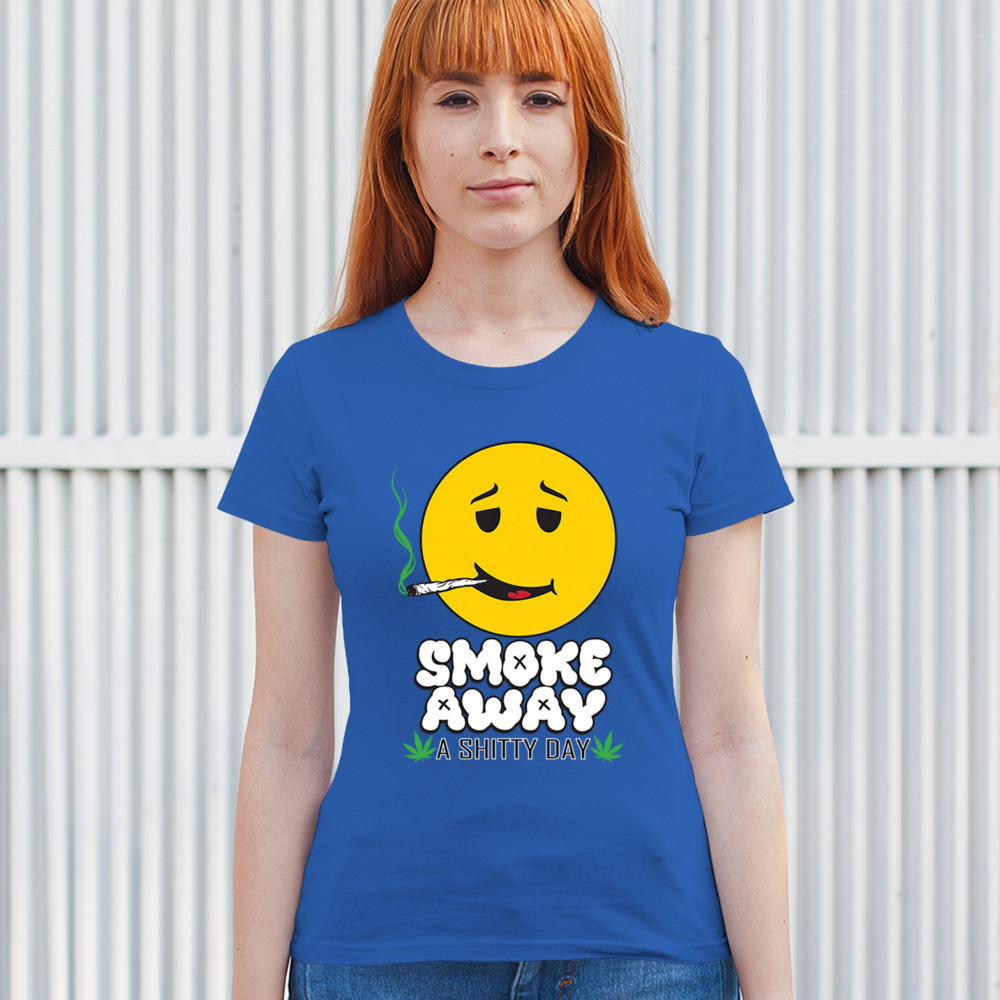 Smiley face with joint and “Smoke Away a Sh*tty Day†message. A perfect cannabis design for stoners, chillers, and sarcastic stress relief.