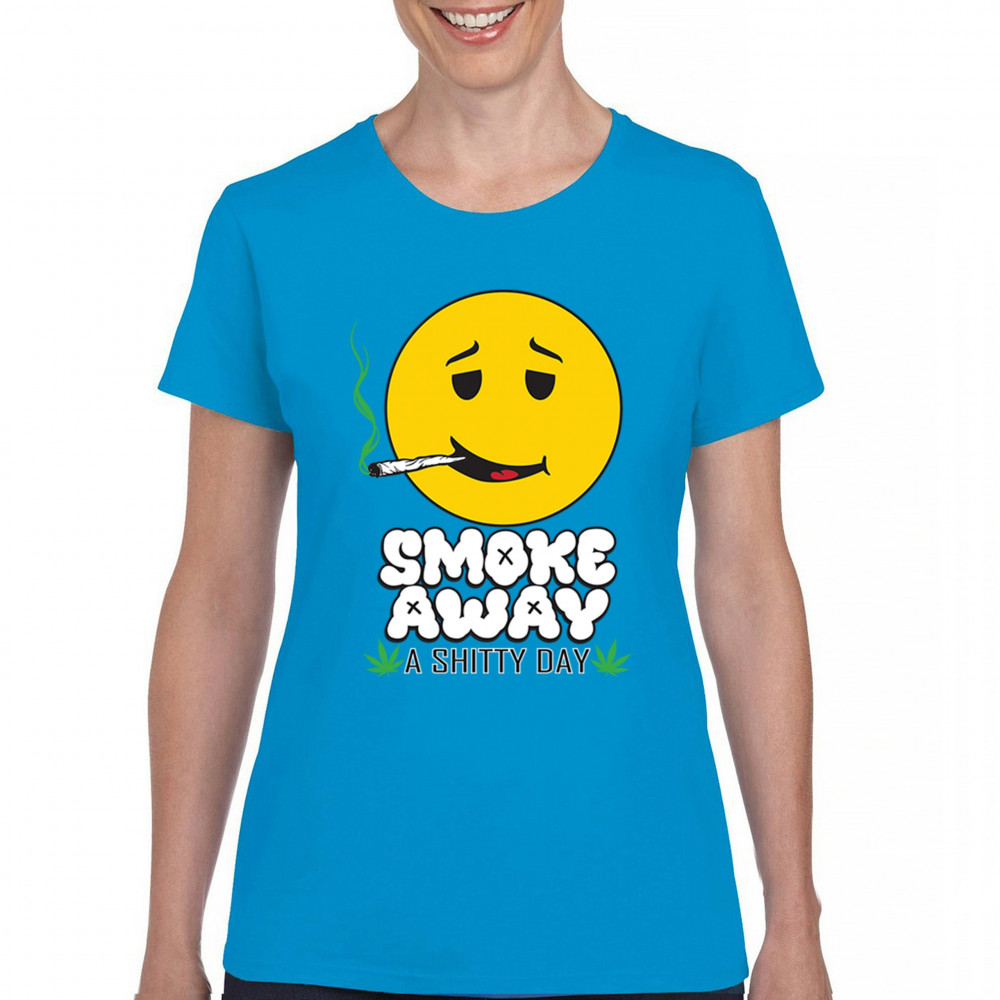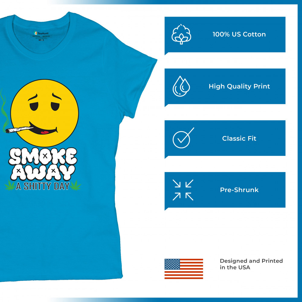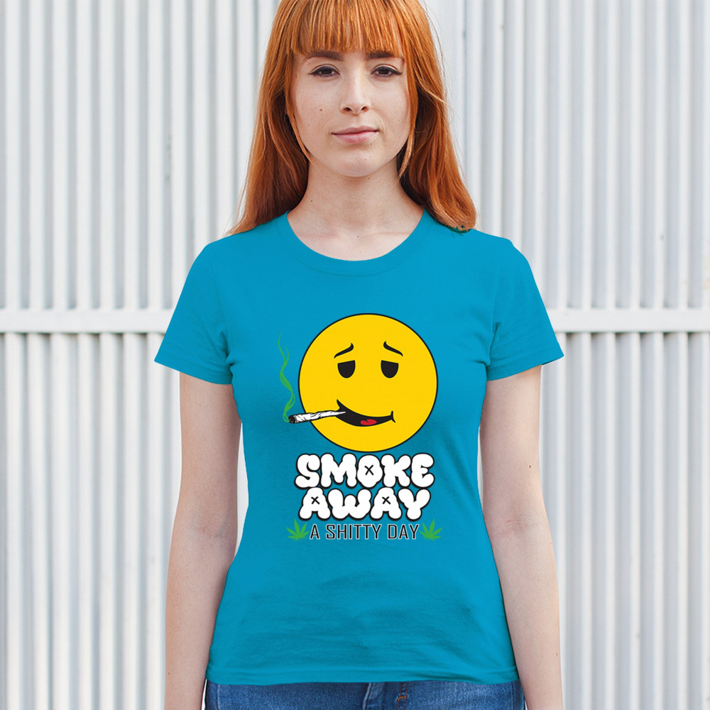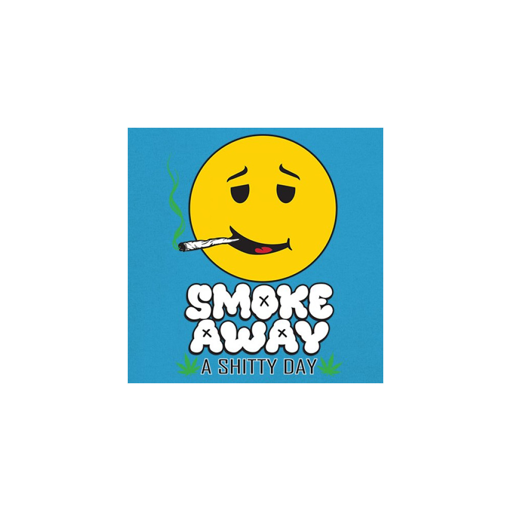 Smiley face with joint and “Smoke Away a Sh*tty Day†message. A perfect cannabis design for stoners, chillers, and sarcastic stress relief.
