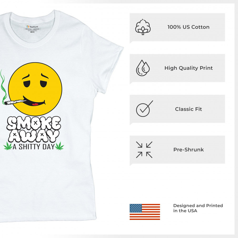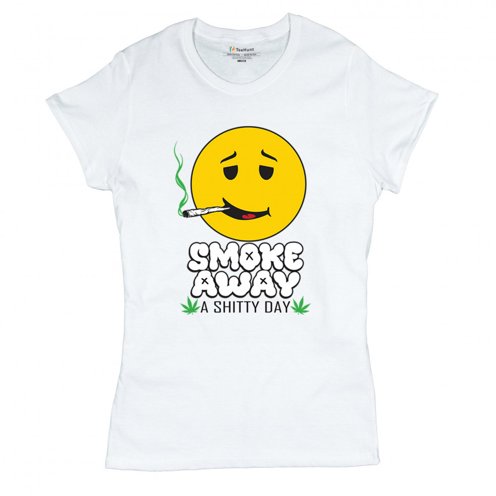 Smiley face with joint and “Smoke Away a Sh*tty Day†message. A perfect cannabis design for stoners, chillers, and sarcastic stress relief.