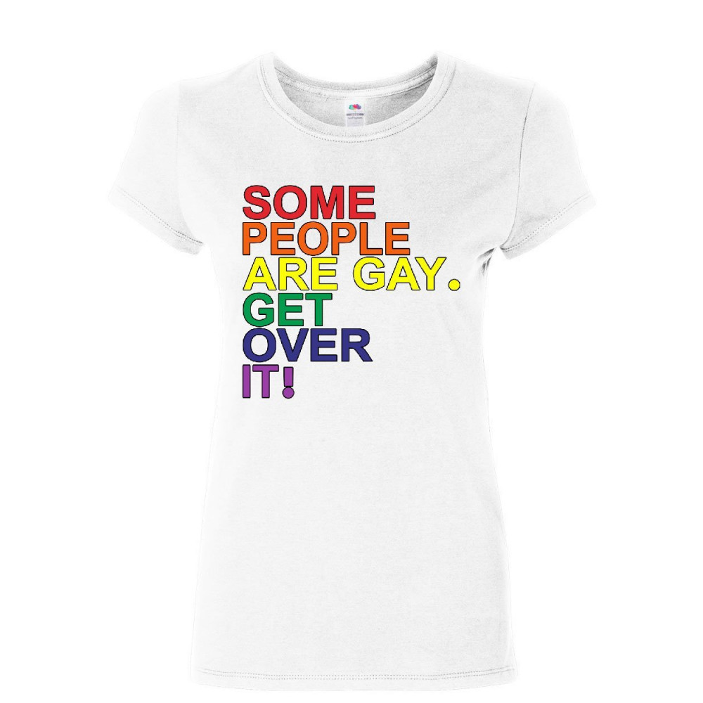 SOME PEOPLE ARE GAY. GET OVER IT! women's t-shirt lgbtq pride rainbow shirt white