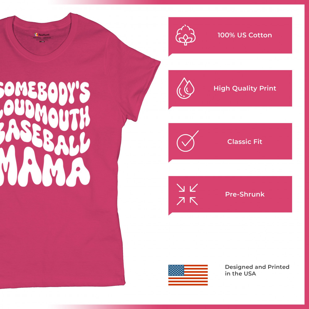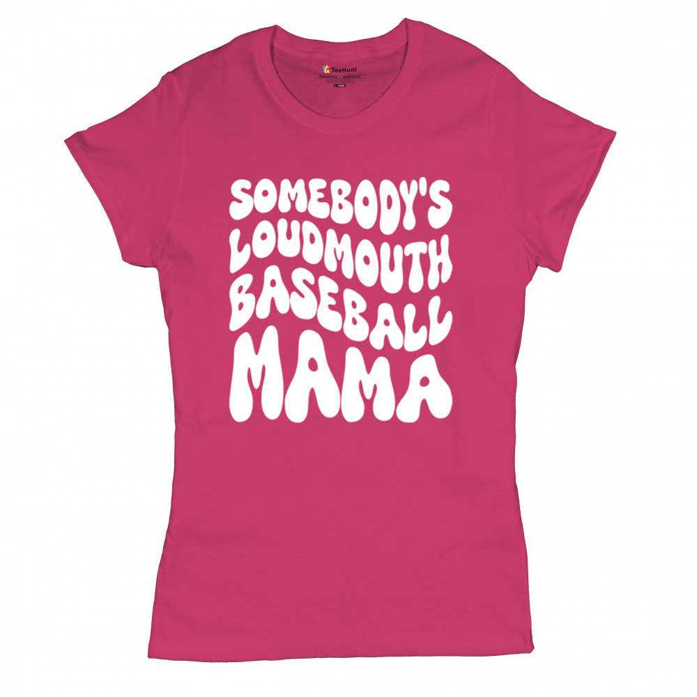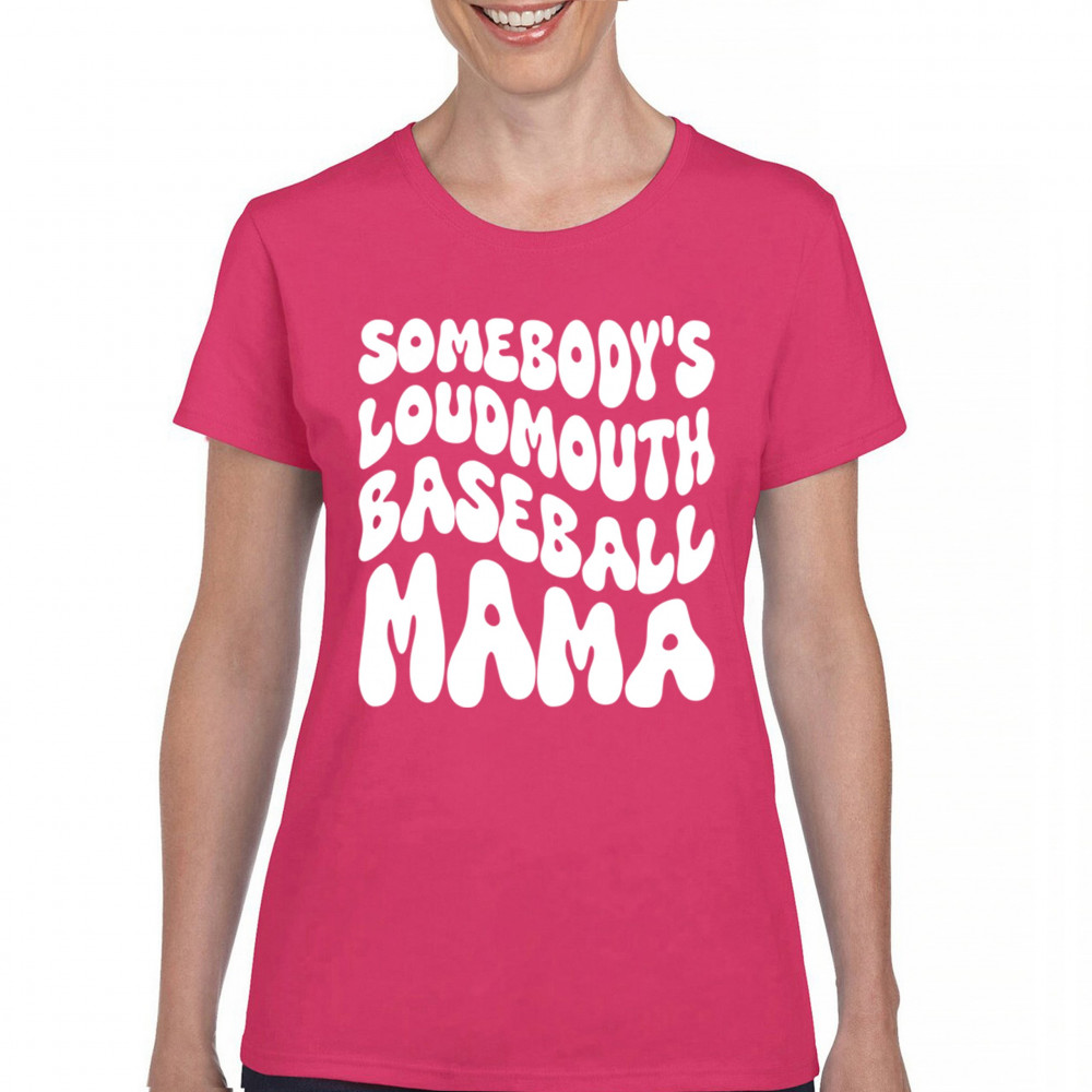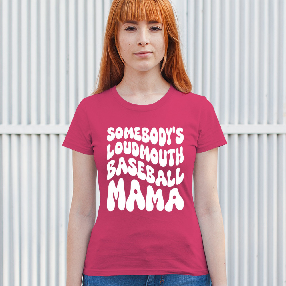 Show off your spirited support with the "Somebody's Loudmouth Baseball Mama" design. Perfect for game days, this bold and playful design captures your enthusiasm and pride.