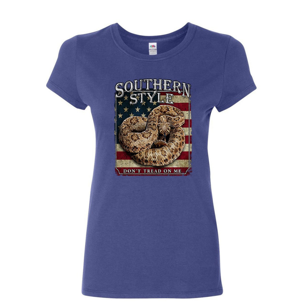 SOUTHERN STYLE RATTLESNAKE women's t-shirt don't tread on me gadsden usa shirt blue