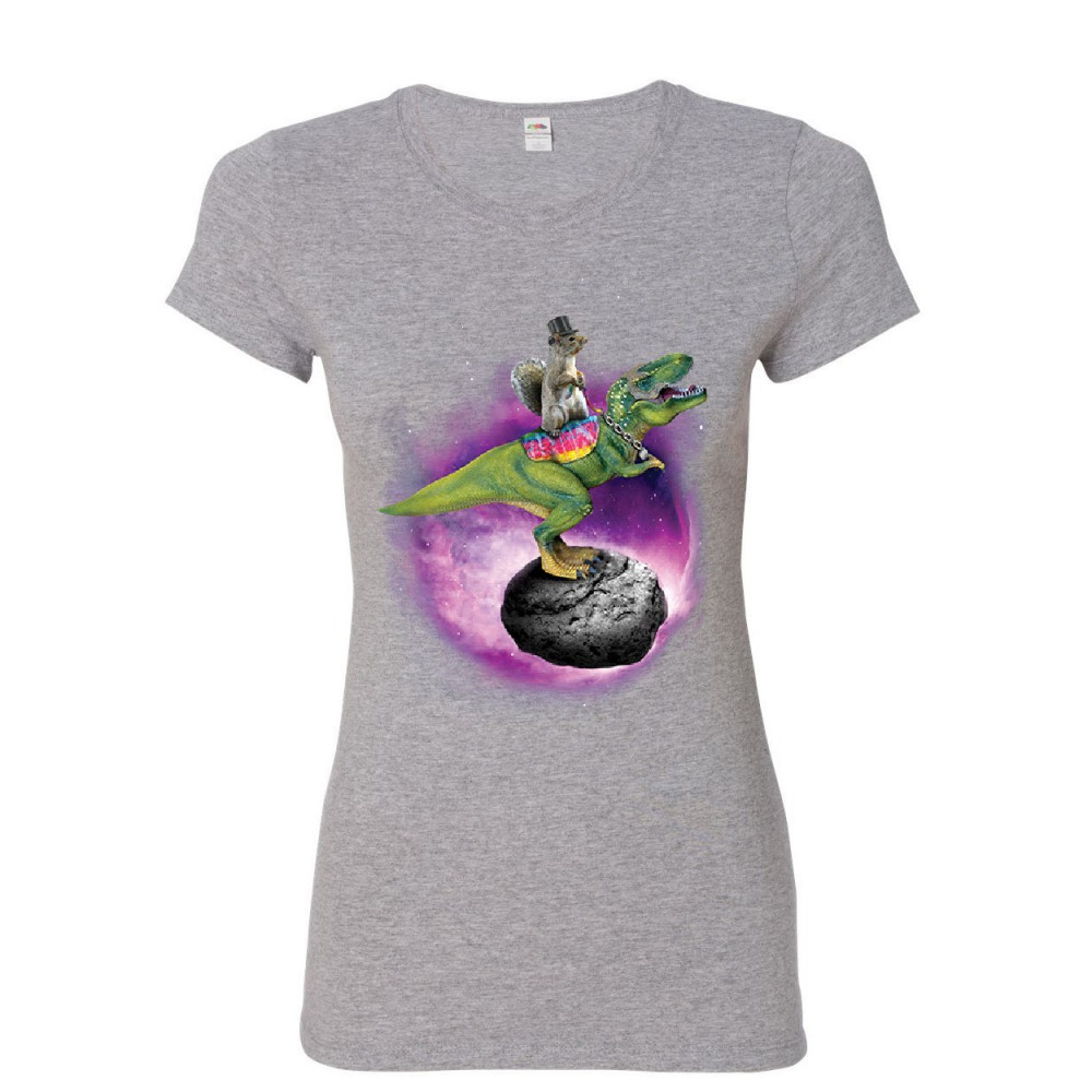 SQUIRREL RIDING T-REX RIDING ASTEROID women's t-shirt funny space weird shirt gray