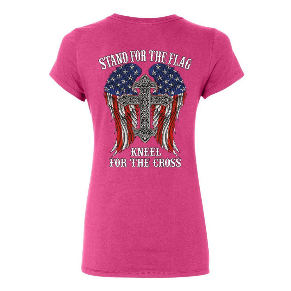 STAND FOR THE FLAG KNEEL FOR THE CROSS women's t-shirt patriot political shirt pink