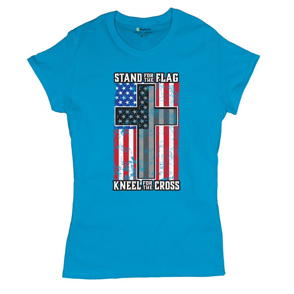 Stand tall for your beliefs and allegiance with our Stand for the Flag Kneel for the Cross tee, a seamless blend of American pride and Christian conviction. Adorned with the American flag and the emblematic cross, this design discreetly represents Trump m