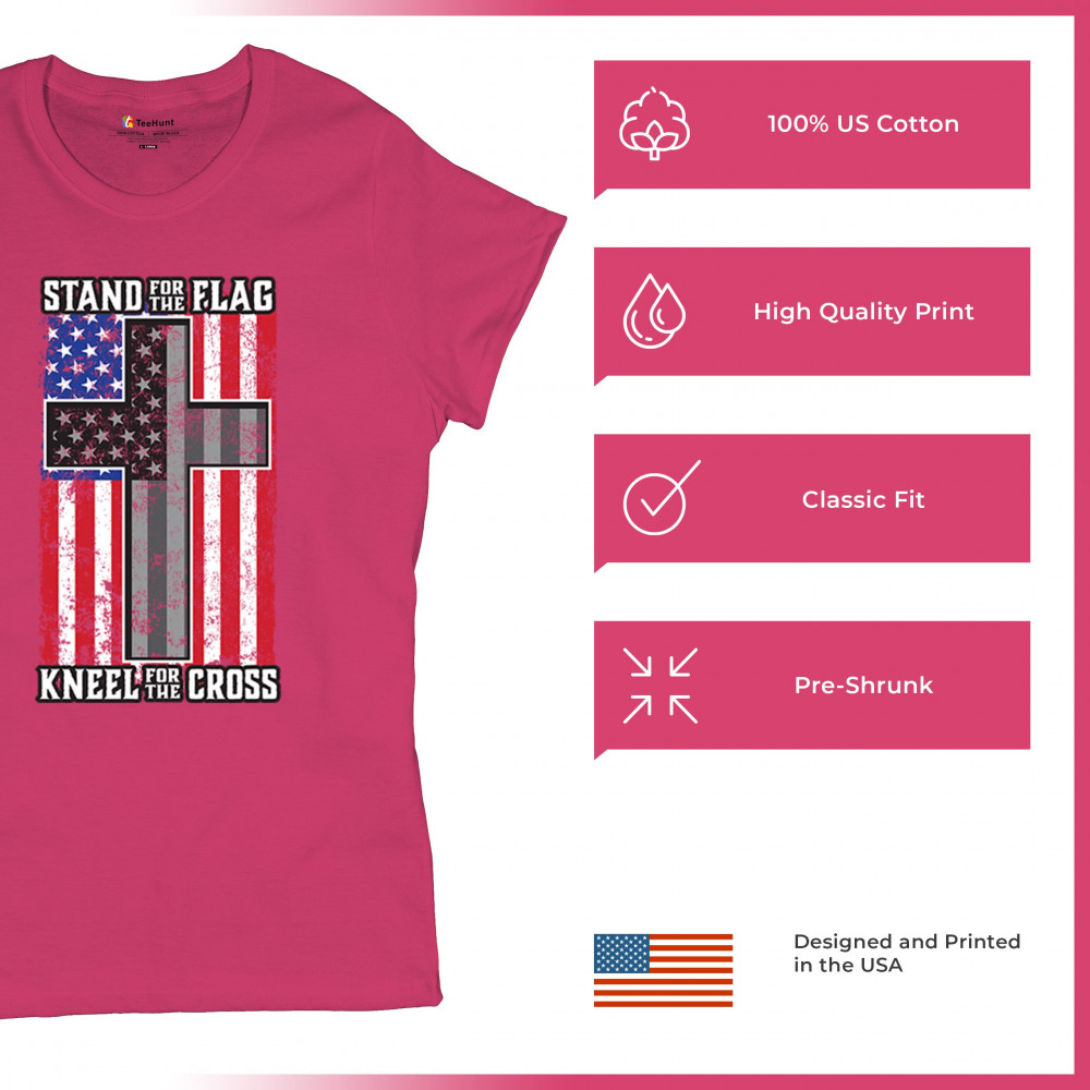 Embrace your identity as an American patriot and devout Christian with our Stand for the Flag Kneel for the Cross tee, a powerful testament to your values. Crafted with the American flag and the sacred cross, this design serves as both Trump merchandise and a symbol of unwavering faith. Whether you're a veteran, active military member, or simply a defender of liberty, this shirt proudly upholds the principles of the Second Amendment while honoring the legacy of Jesus Christ.