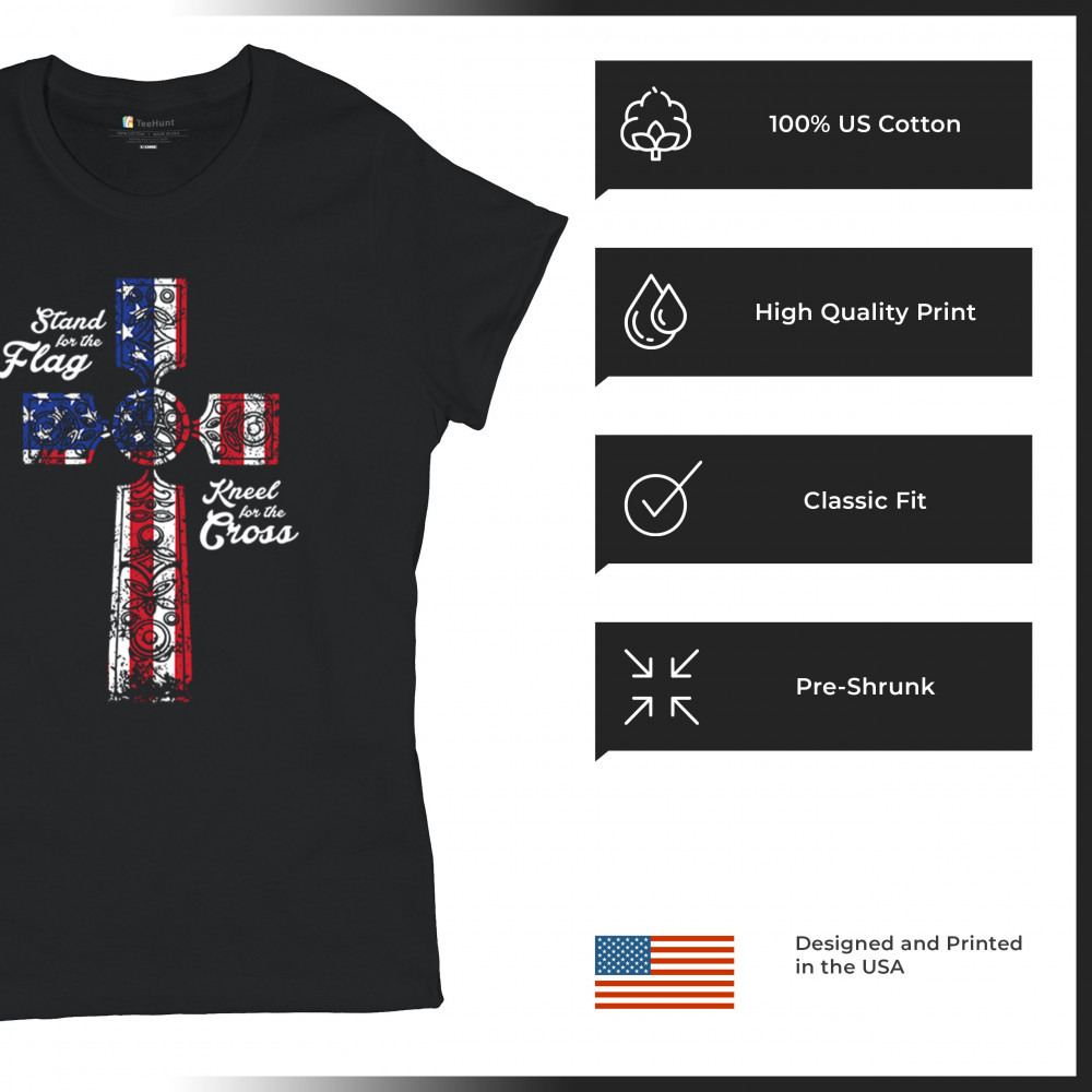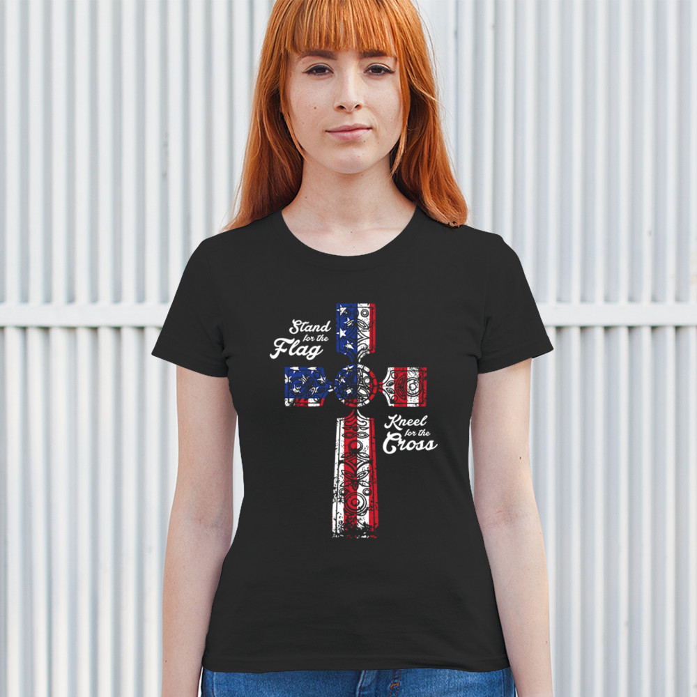 Unite under the banner of freedom and faith with our Stand for the Flag Kneel for the Cross design, a testament to the enduring values that define America. This Trump shirt combines reverence for the American flag with reverence for Jesus Christ, symbolized by the powerful Punisher logo. As a Christian patriot and supporter of our military, proudly uphold the principles of the 2nd Amendment. Let this shirt be a reminder of the strength found in both flag and cross.