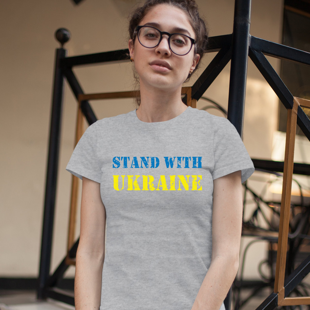 STAND WITH UKRAINE t-shirt stop war support ukrainians women's tee gray