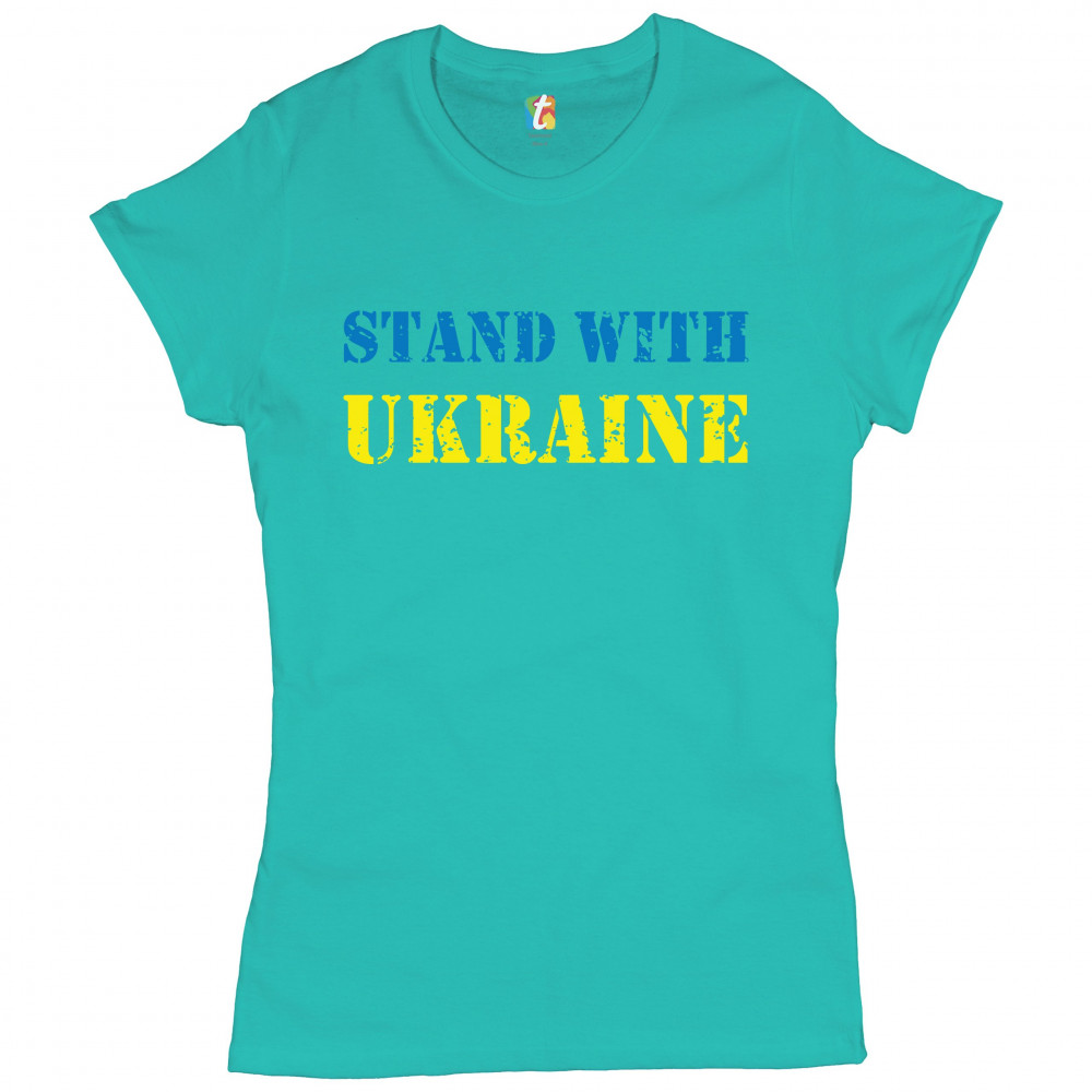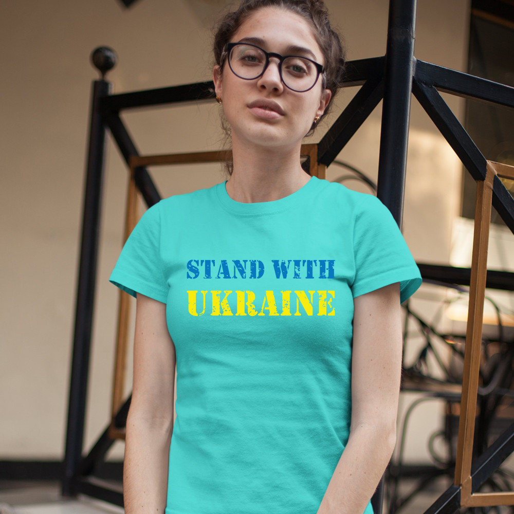 STAND WITH UKRAINE t-shirt stop war support ukrainians women's tee light blue