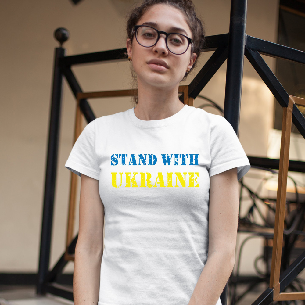 STAND WITH UKRAINE t-shirt stop war support ukrainians women's tee white