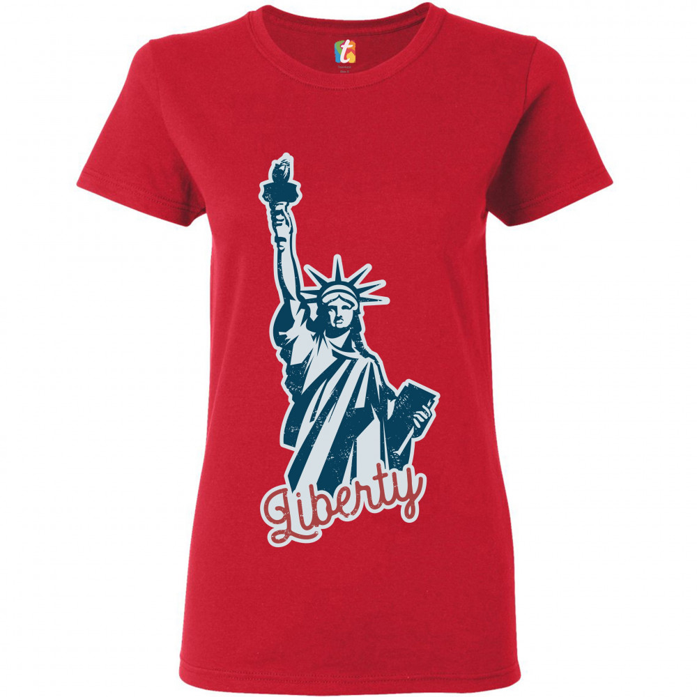 STATUE OF LIBERTY t-shirt freedom independence 4th of july nyc usa women's tee red