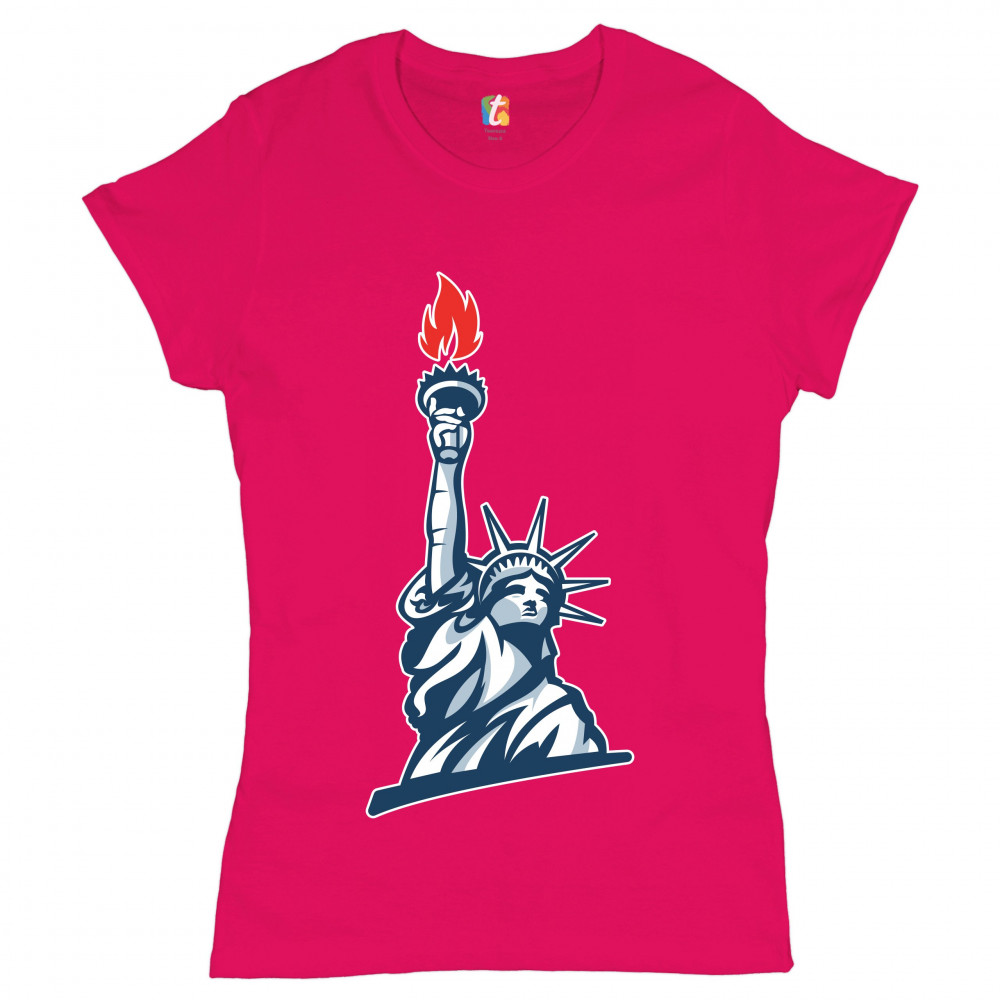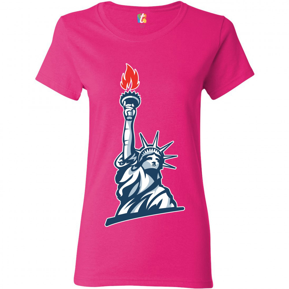 STATUE OF LIBERTY t-shirt manhattan new york 4th of july freedom women's tee pink