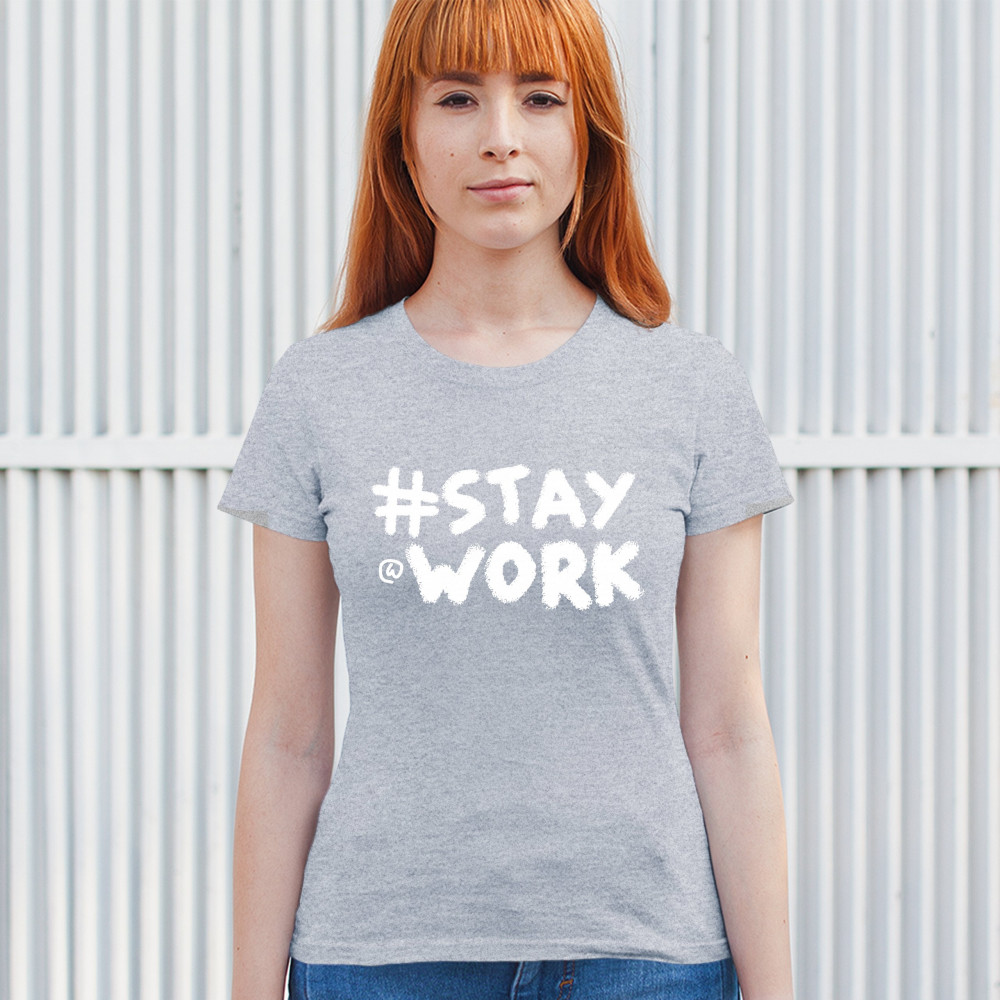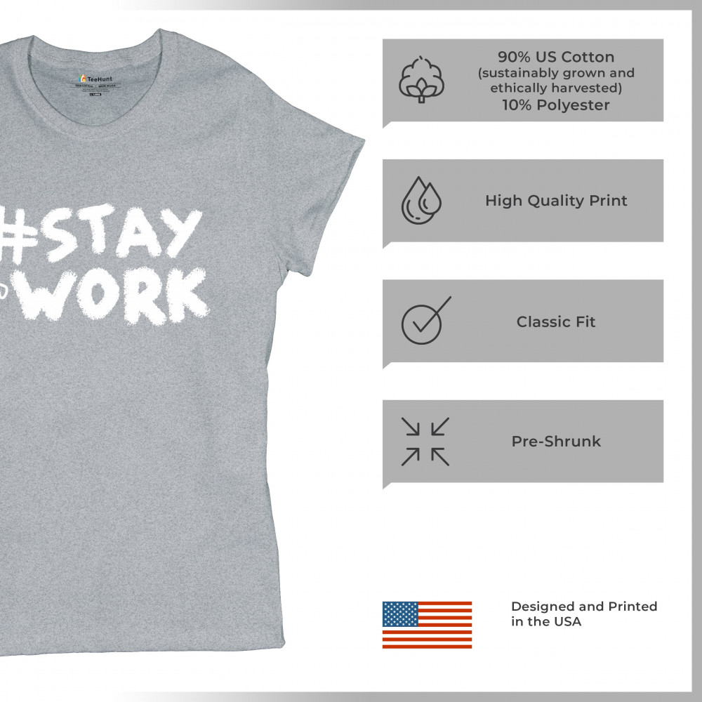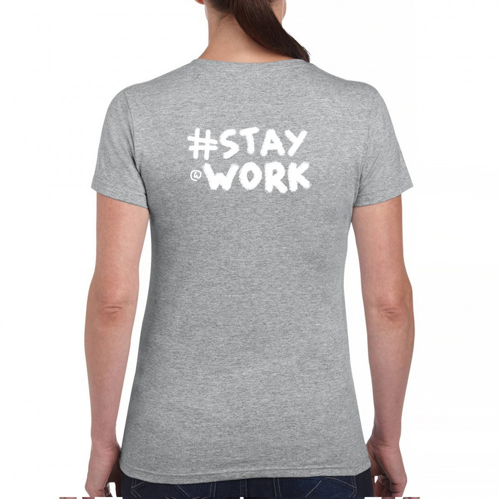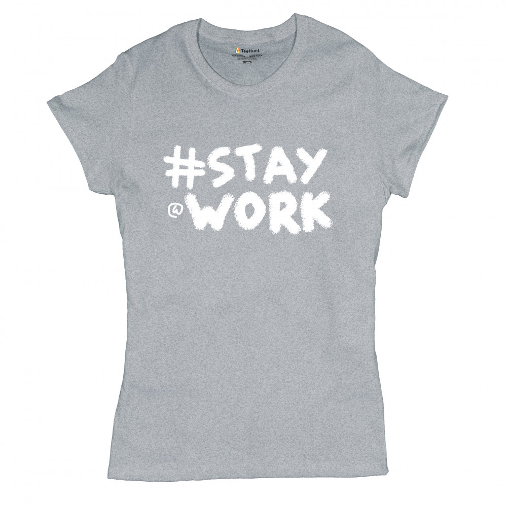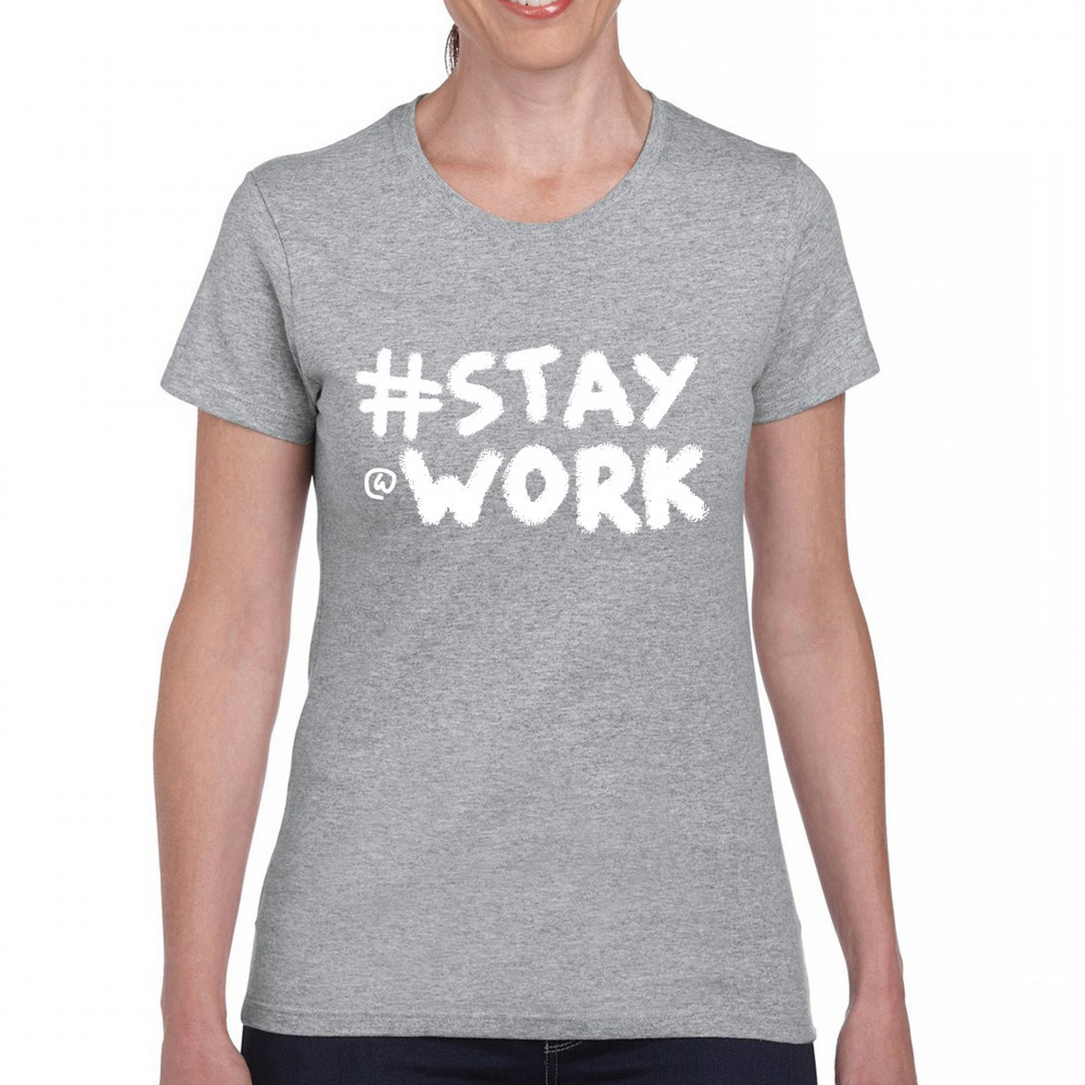 STAY AT WORK FUNNY ELON MUSK TWEET PARODY t-shirt liberal sarcasm women's tee gray