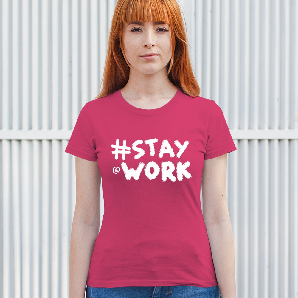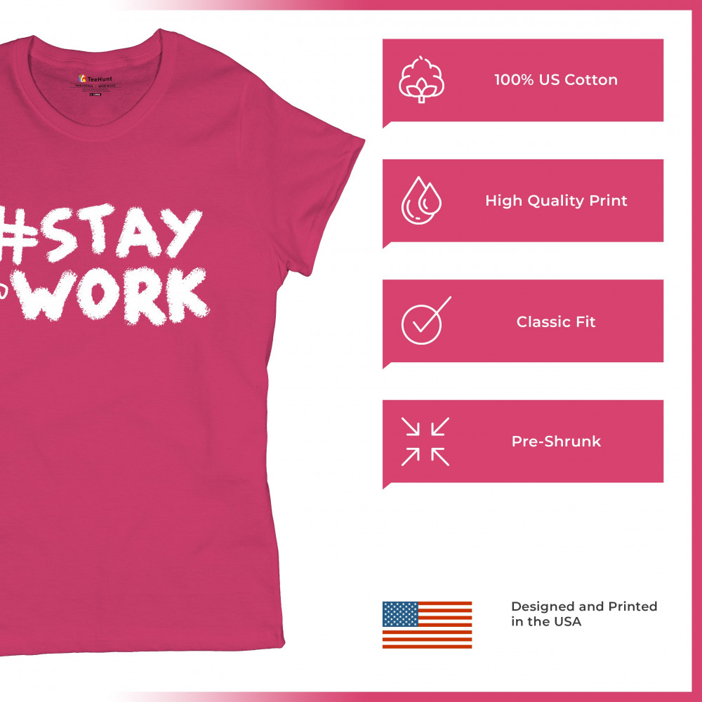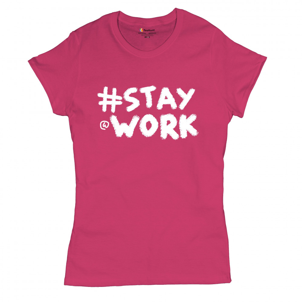 STAY AT WORK FUNNY ELON MUSK TWEET PARODY t-shirt liberal sarcasm women's tee pink