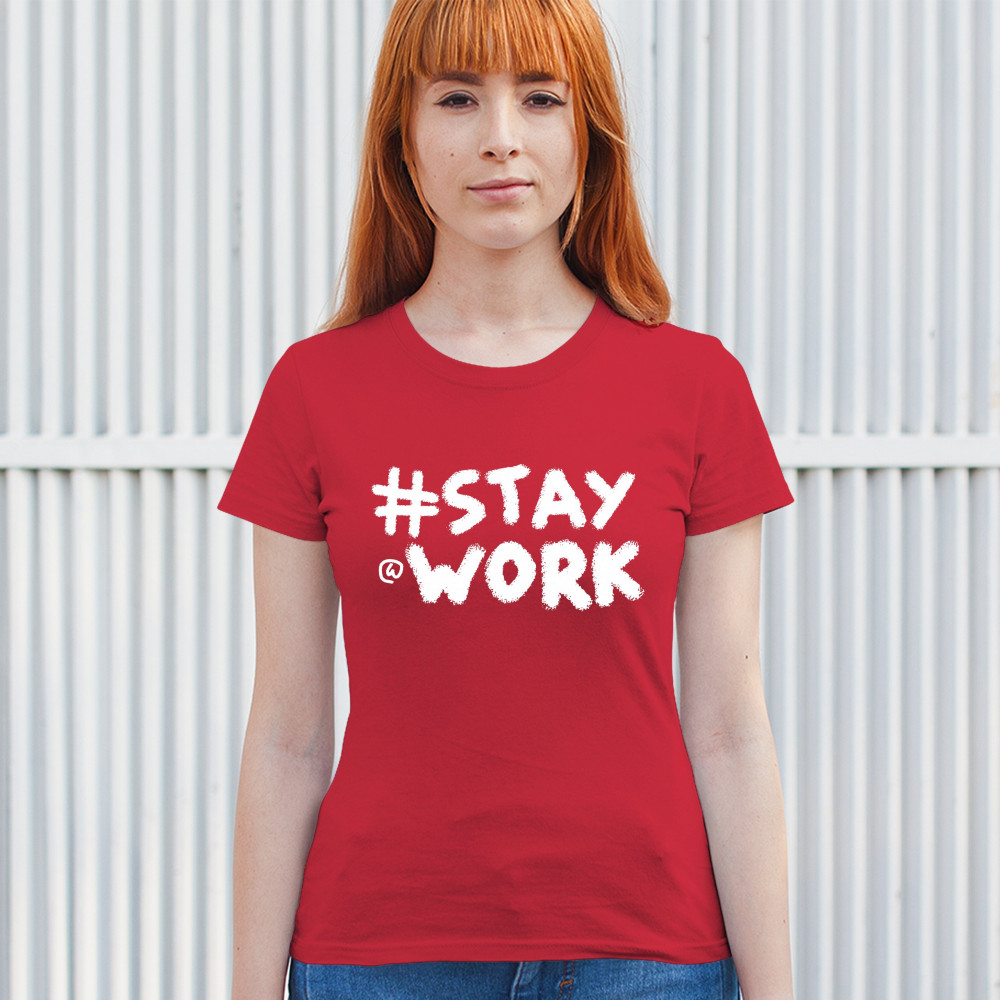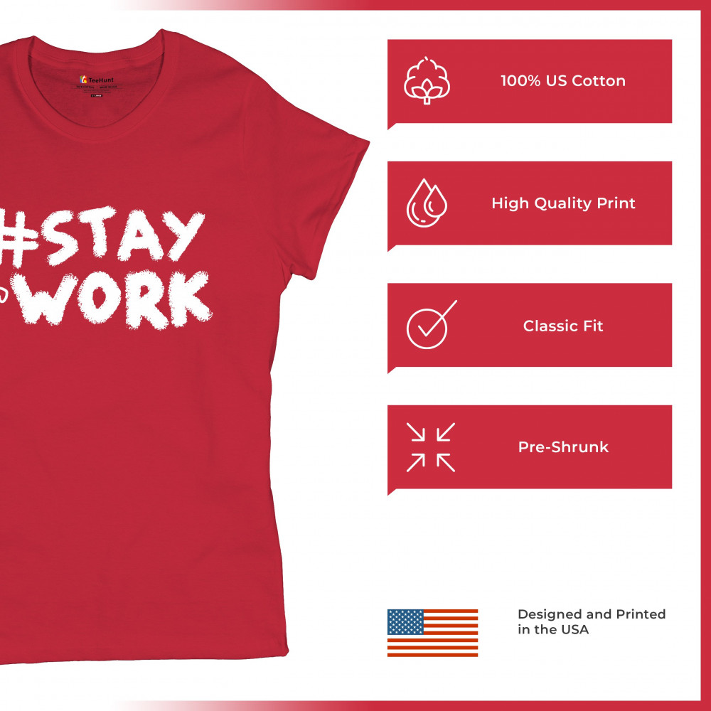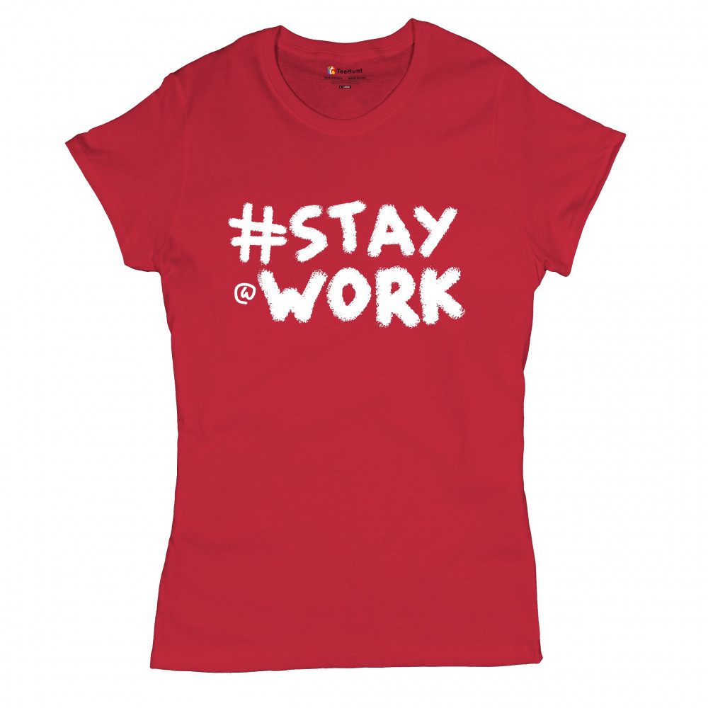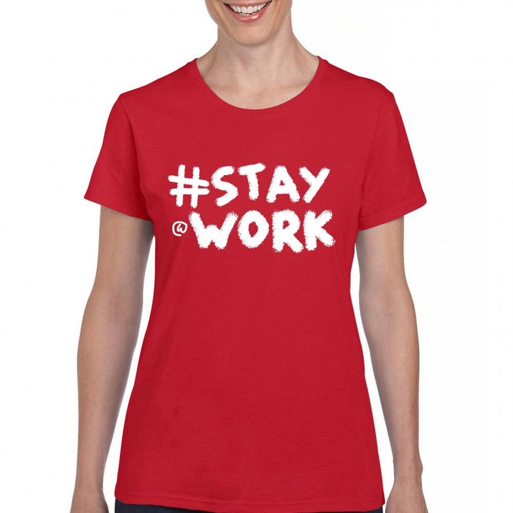 STAY AT WORK FUNNY ELON MUSK TWEET PARODY t-shirt liberal sarcasm women's tee red