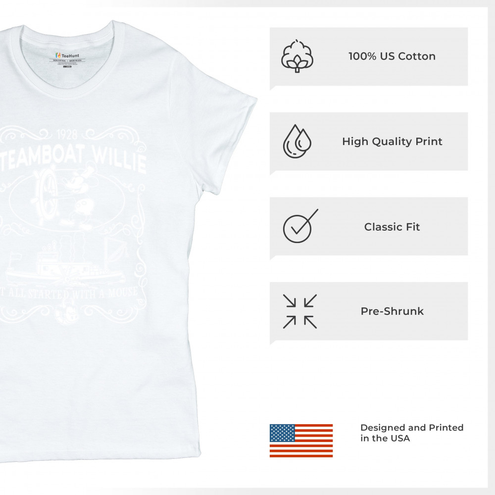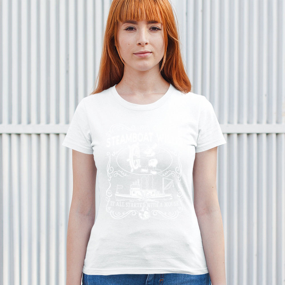 Navigate the waters of nostalgia with Steamboat Willie at the helm, accompanied by the enduring reminder, 'The magic traces back to a little friend.'