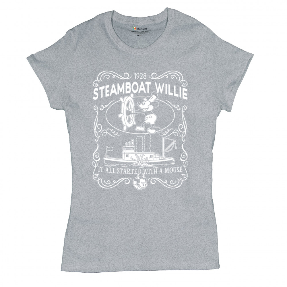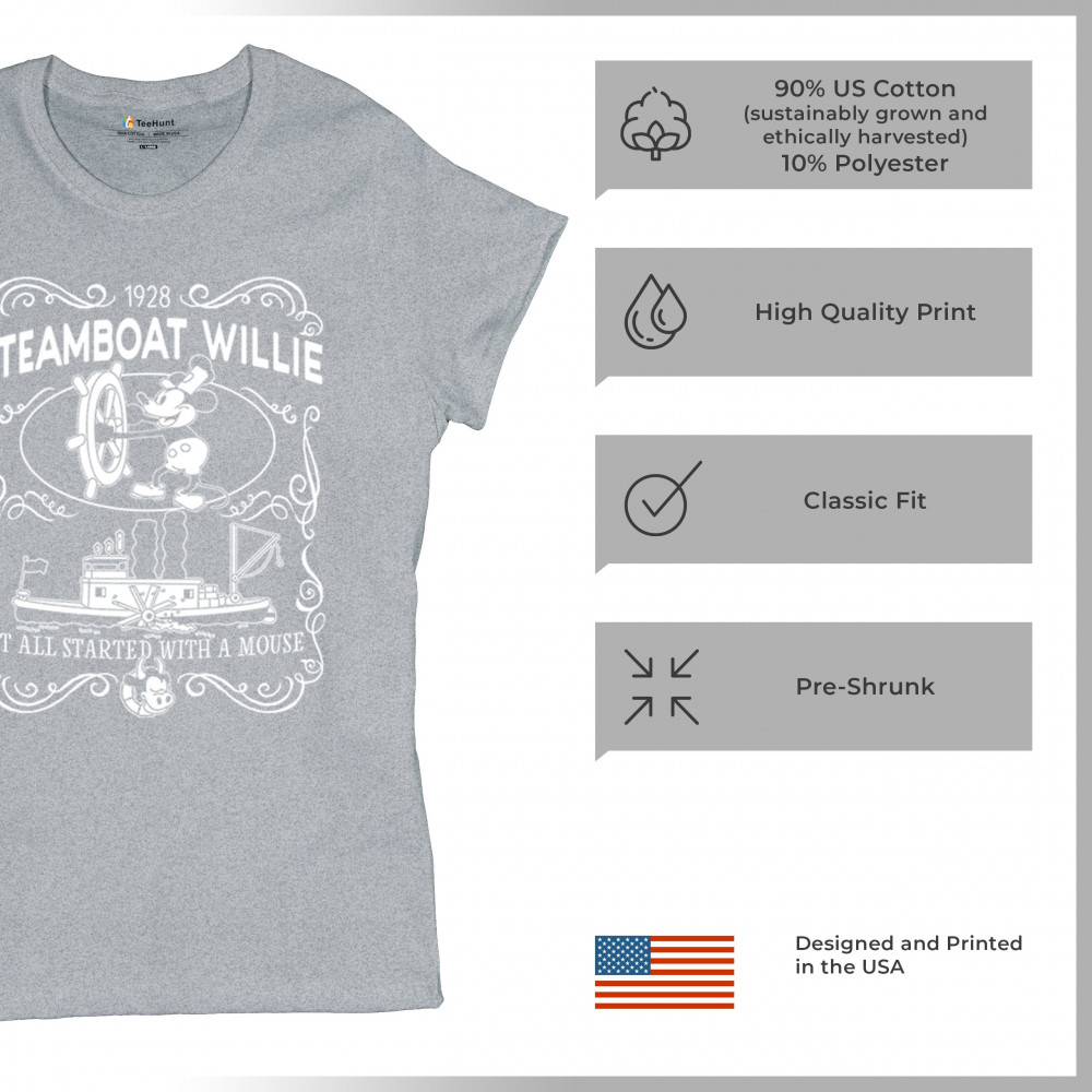 Navigate the waters of nostalgia with Steamboat Willie at the helm, accompanied by the enduring reminder, 'The magic traces back to a little friend.'