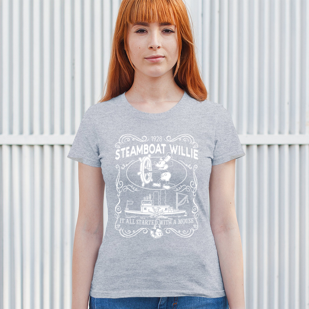 Set sail through the annals of animation as Steamboat Willie commands the vessel, echoing the timeless refrain, 'It all began with a mouse.
