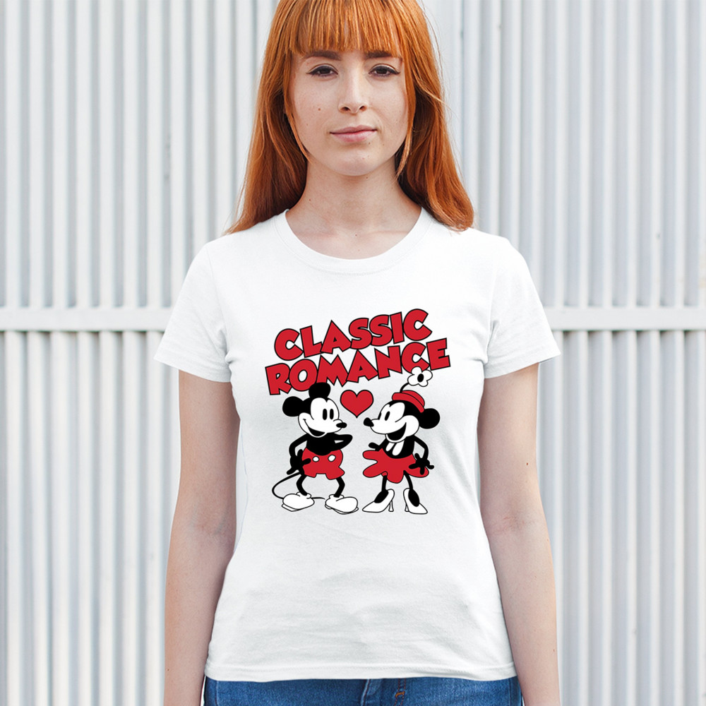 Dive into classic romance with Steamboat Willie in this heartwarming design, featuring a whimsical heart illustration capturing timeless love